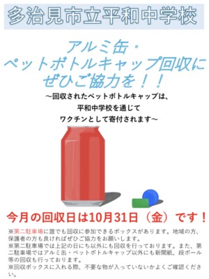 アルミ缶、ペットボトルキャップ回収のお知らせ