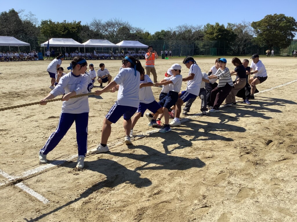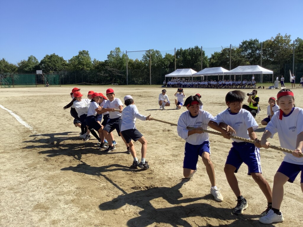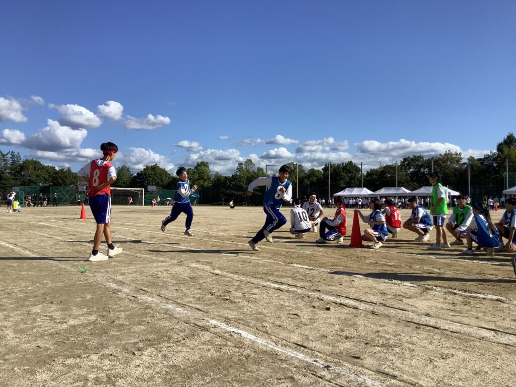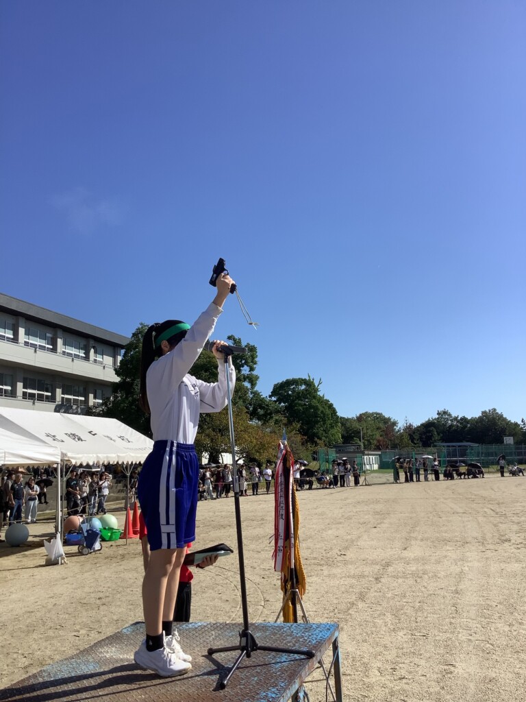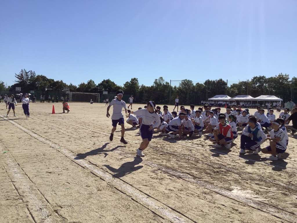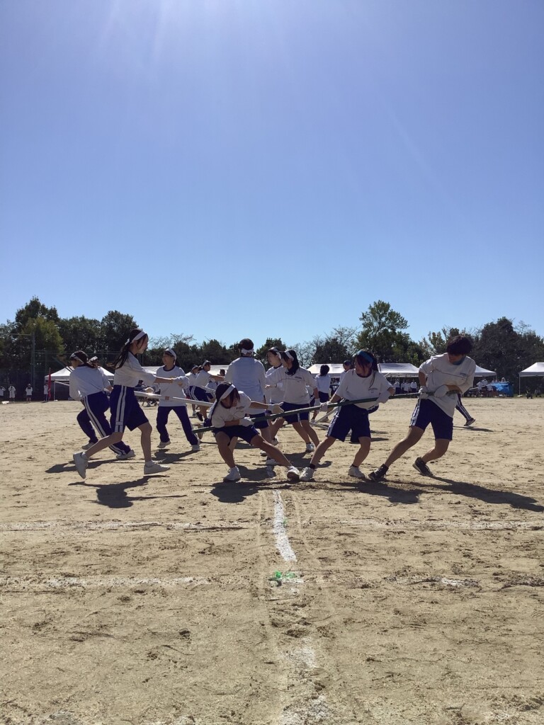 1日雨で延期された今年度の体育祭。雲一つない爽やかな秋晴れのもと本日実施しました。早朝のグランドの水取り、グランド整備に生徒たちが何人も駆けつけてくれて、あっという間に準備完了。「学級対抗リレー」「生徒会種目」に続いて観客を巻き込んだエキシビジョン「綱引き」。参観に来ていた北栄小学校の5年生にも参加してもらいながらスローガン通りの笑顔溢れる時間となりました。午後からは学級対抗大縄跳び。まさしく各学級のプライドをかけて、全力で縄を跳び続けました。最後に団対抗リレー。選りすぐりの精鋭が自慢の俊足を競いました。結果、白軍が取組優勝と総合優勝の2冠達成。3年連続白軍に優勝旗が渡りました。「一生懸命がかっこいい」姿溢れる体育祭となりました。