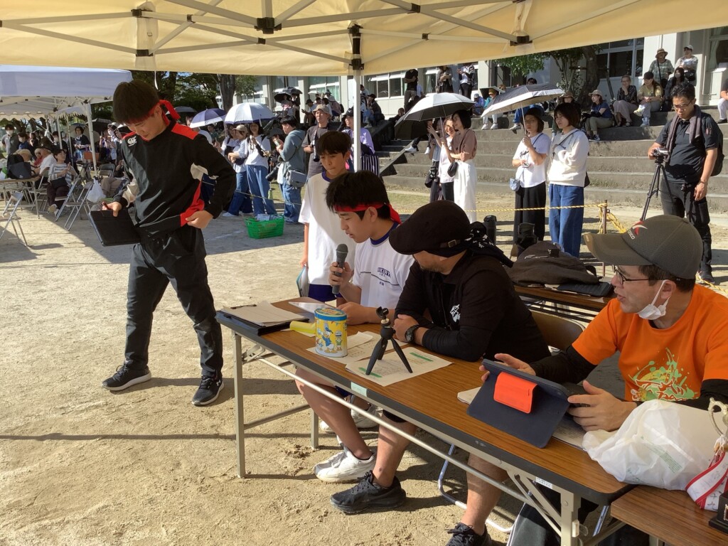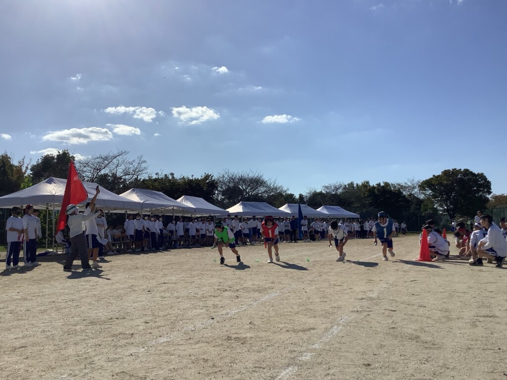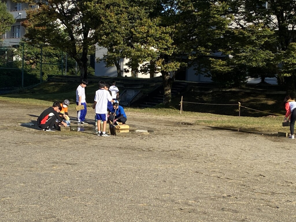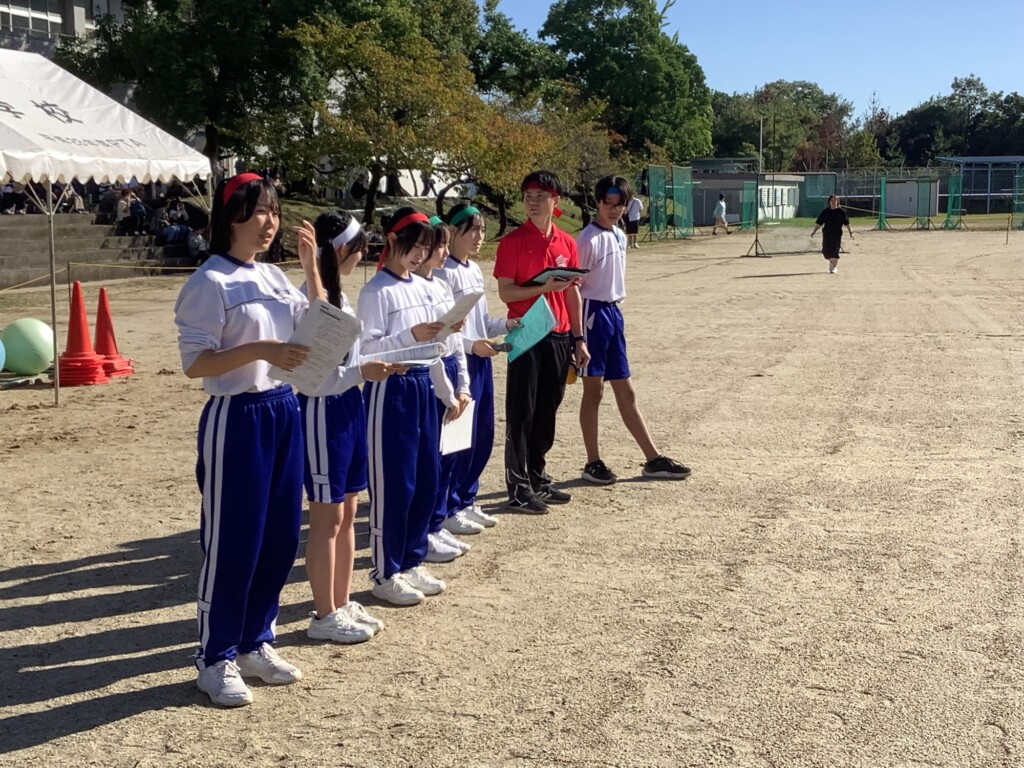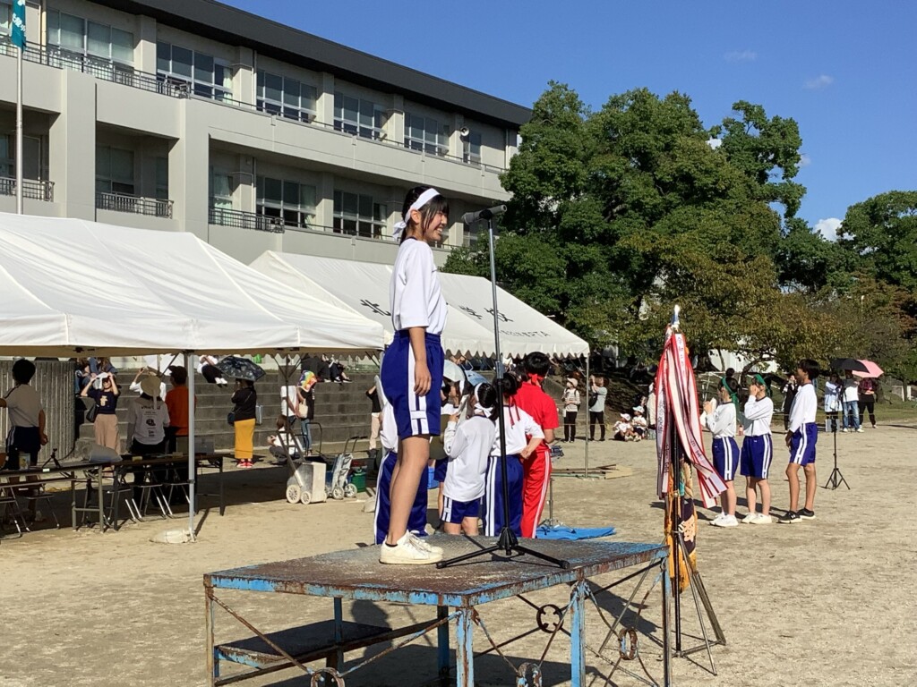 1日雨で延期された今年度の体育祭。雲一つない爽やかな秋晴れのもと本日実施しました。早朝のグランドの水取り、グランド整備に生徒たちが何人も駆けつけてくれて、あっという間に準備完了。「学級対抗リレー」「生徒会種目」に続いて観客を巻き込んだエキシビジョン「綱引き」。参観に来ていた北栄小学校の5年生にも参加してもらいながらスローガン通りの笑顔溢れる時間となりました。午後からは学級対抗大縄跳び。まさしく各学級のプライドをかけて、全力で縄を跳び続けました。最後に団対抗リレー。選りすぐりの精鋭が自慢の俊足を競いました。結果、白軍が取組優勝と総合優勝の2冠達成。3年連続白軍に優勝旗が渡りました。「一生懸命がかっこいい」姿溢れる体育祭となりました。