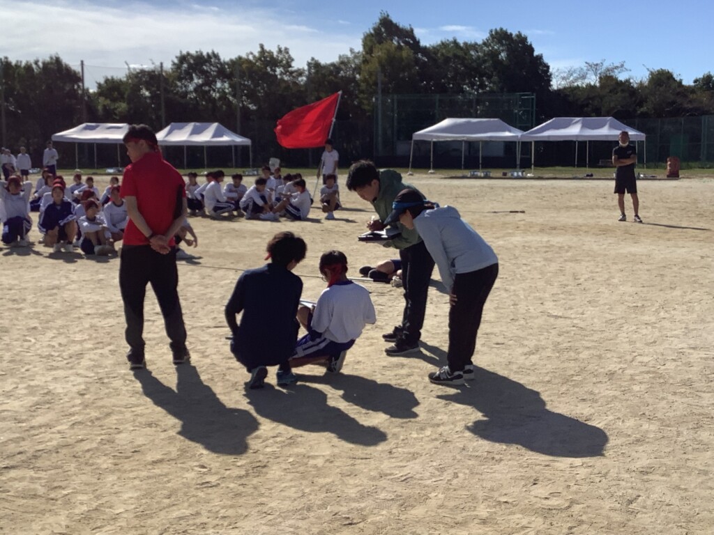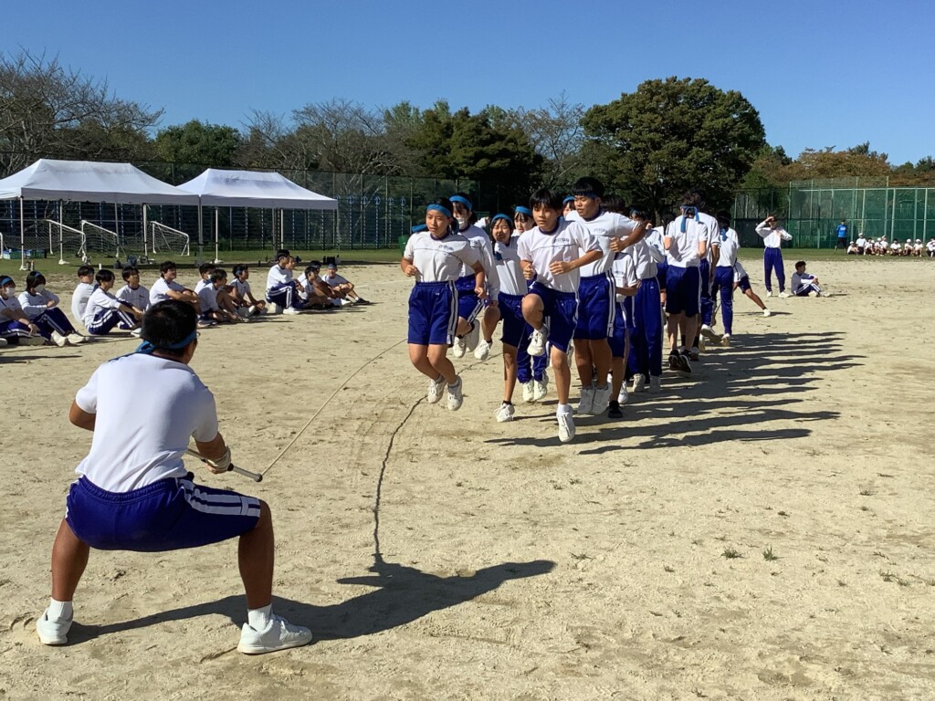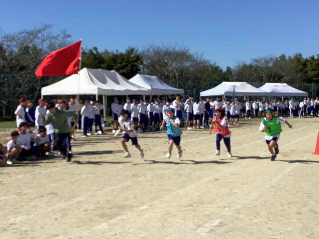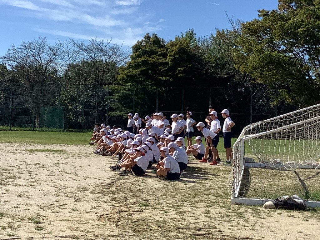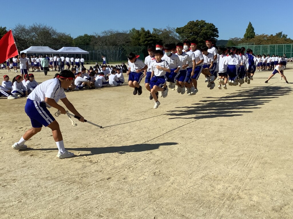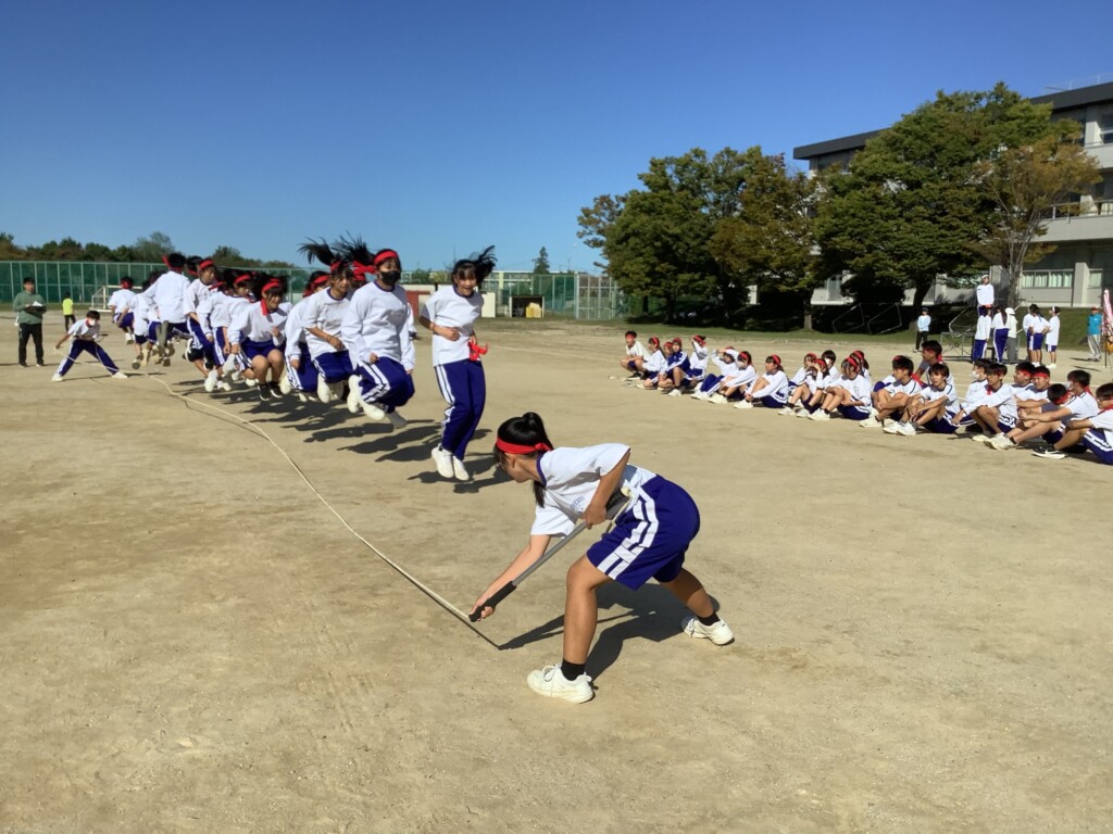 本日全校総練習2回目を実施しました。全校大縄競技と団対抗リレー、閉会式の練習を行いました。大縄では学年ごとにチャレンジし、他学年がその姿に精一杯の応援を送っている姿が印象的でした。北栄小学校の6年生が見学に来ていたので、一段と気合が入ったようです。団対抗リレーでは先生チームも走りましたが、予想通りビリでした。体育祭まで練習できる日は残すところ後3日となりました。笑顔満祭のスローガン通り、みんなが笑顔になる体育祭を目指し、「一生懸命がかっこいい」姿で頑張っています。