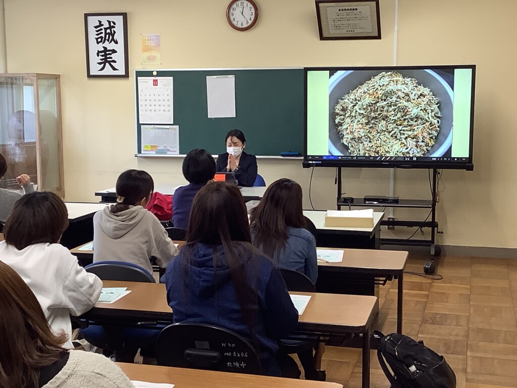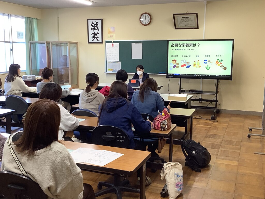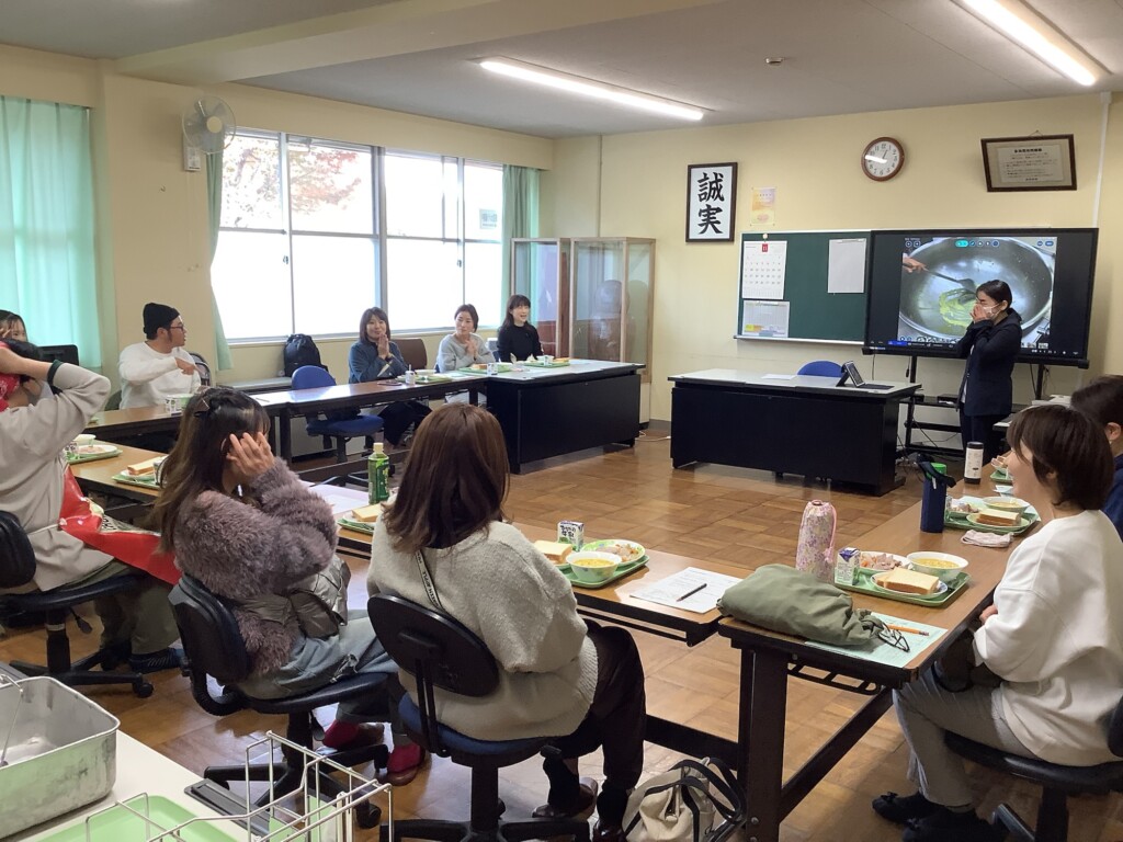 また、給食試食会も実施され、栄養教諭の藤原先生から給食の栄養のことや給食の作り方など、給食に関わる講話をいただきました。こちらもコサージュ同様、栄養教諭さんや調理員さんが、子ども達のことを思い、丁寧に心を込めて作ってくださっていることがわかり、参加された保護者の皆さんはしきりに感心してみえました。その後は給食の試食。皆、久しぶり(?)の給食に舌鼓を打ち、笑顔溢れる楽しい試食会となりました。