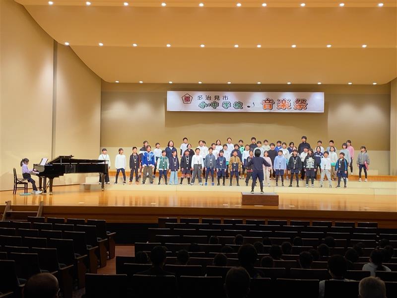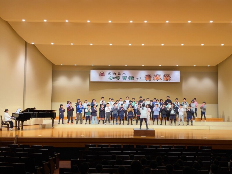 12月 11 2025 4年生が、多治見市小・中学校音楽祭に出場しました! 本日、バロー文化ホールで開催された市の音楽祭に、北栄小の代表として4年生が出演しました。 一曲目は「スーパーカリフラジリスティックエクスピアリドーシャス」の合奏! リズムに乗った楽しい演奏で、観客席では思わず一緒にリズムをとる児童の姿も♪ 二曲目は「チャレンジ!」は、大きな口で伸びやかに、途中できれいな裏声も生かした素晴らしい合唱でした! どちらの曲からも、これまでの練習の成果と成長が感じられる素敵な発表となりました。