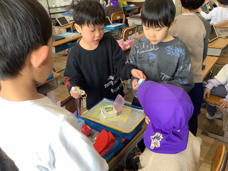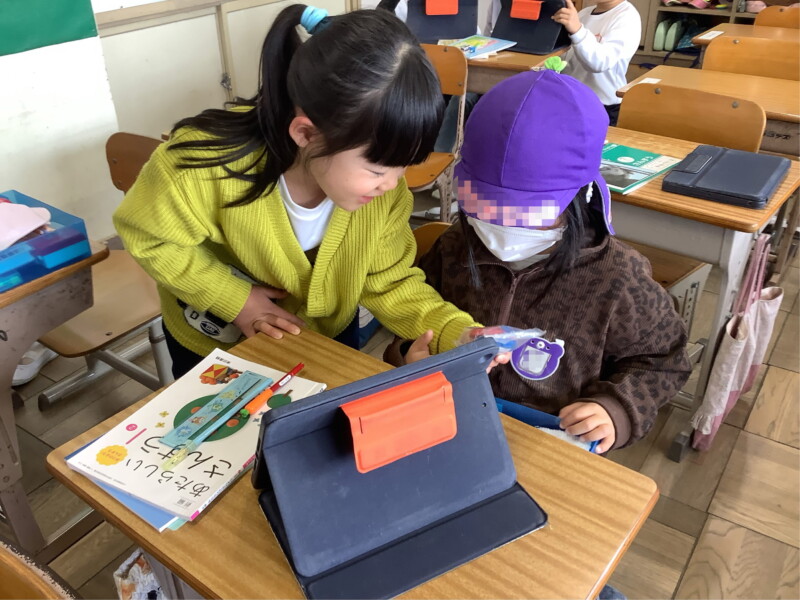 はじめは、1年生による「小学校しょうかい」の発表です。これまで準備してきた成果を発揮しようと、どの子もやる気いっぱい。少し緊張しながらも、堂々と発表する姿に成長を感じました。続いての「なかよしあそび」では、1年生と園児のみなさんでじゃんけん列車を楽しみました。その後の授業参観と教室探検では、「ここで勉強するんだよ」と、1年生がやさしく案内する姿がとても頼もしく見えました。