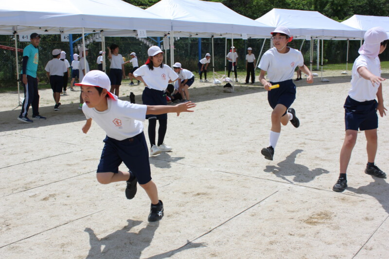 5月 22 2025 運動会まであと2日 運動場にコーンやロープが設置され、運動会を迎える雰囲気がますます高まってきました。 昼休みにも自主的に運動会の練習をする姿が増えています。今日は6年生が、リレーのバトンパスを練習していました。後ろを振り向かず、スピードに乗ってバトンを受け取る姿がとてもかっこいいです!さすが6年生!