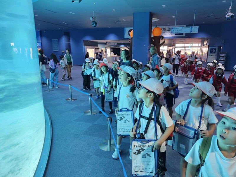 10月 15 2025 2年生 社会見学『名古屋港水族館』① 曇り空ではありますが、暑すぎず・寒すぎずの過ごしやすい中での出発となりました♪ ほぼ定刻に到着し、学級ごとに北館を見学。南館にも班別で見学に行きます♪
