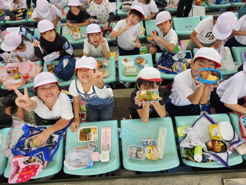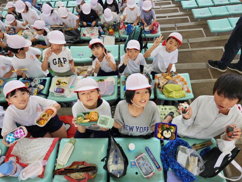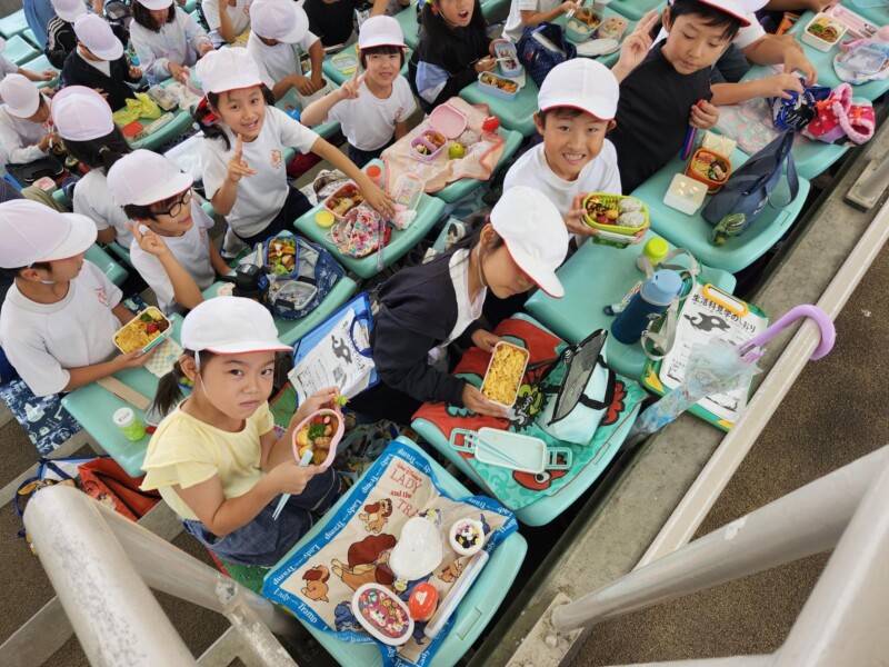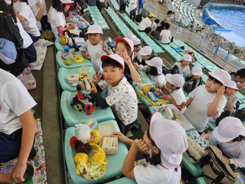 10月 15 2025 2年生 社会見学『名古屋港水族館』③ ~昼食🍱タイム~ スタジアムで、お楽しみのお弁当🍱タイム! 美味しくて、かわいくて、最高のお弁当で、待ちに待ったランチタイムを満喫しています♪ 食後は、本日のメインイベント、イルカショーがお待ちかねです♪