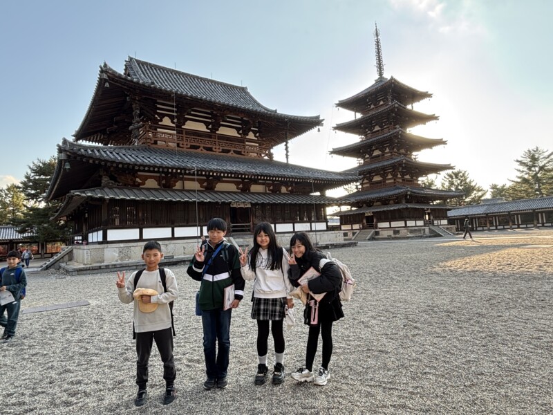 11月 21 2025 6年生 修学旅行【2日目】② ~『法隆寺』見学~ 最後の見学地、世界最古の木造建築、世界文化遺産の「法隆寺」へとやって来ました! エンタシス柱の膨らみを目の当たりにし、そびえ立つ圧巻の五重塔の姿に目を見張る様子が子どもたちのあちらこちらに♪