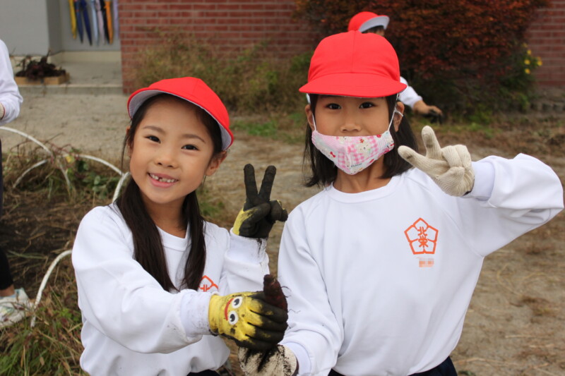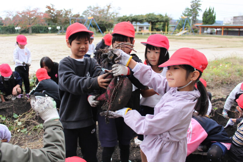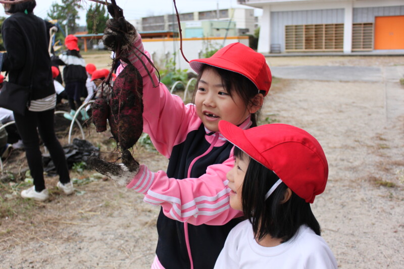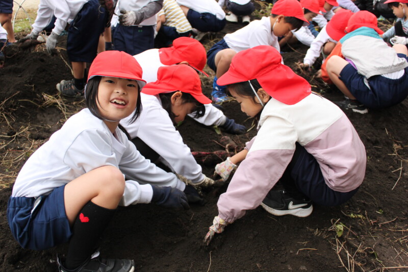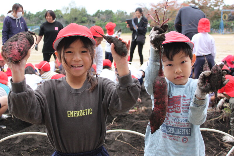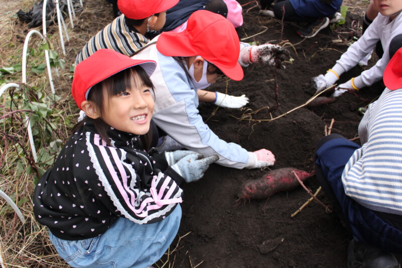「こんなに大きいのがとれたよ!」「見て、たくさん出てきた!」 あちこちから歓声があがり、笑顔いっぱいの芋ほりになりました。土の感触やサツマイモの重みを感じながら、夢中になって収穫する姿はとてもほほえましく、自然とふれあう楽しさを全身で味わっているようでした。