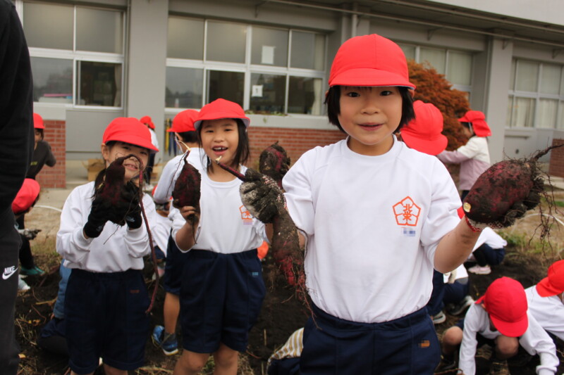 収穫したサツマイモは、給食調理場のご協力で、後日給食として登場します。自分たちで育てたサツマイモがどんな料理になるのか、子どもたちは今からワクワクしています♪