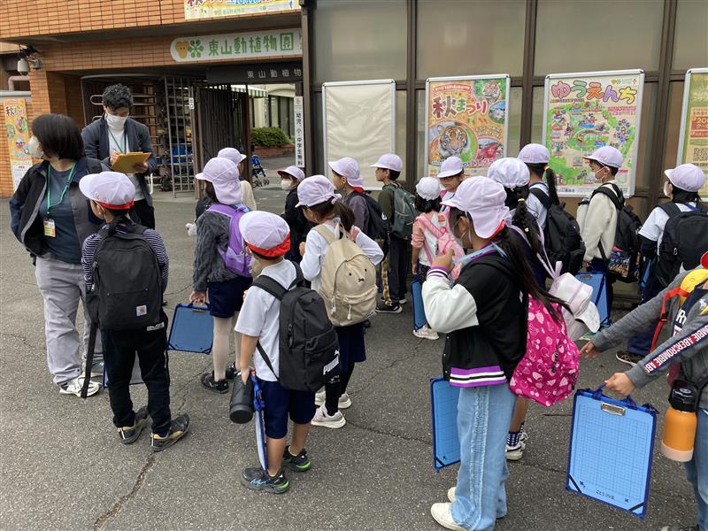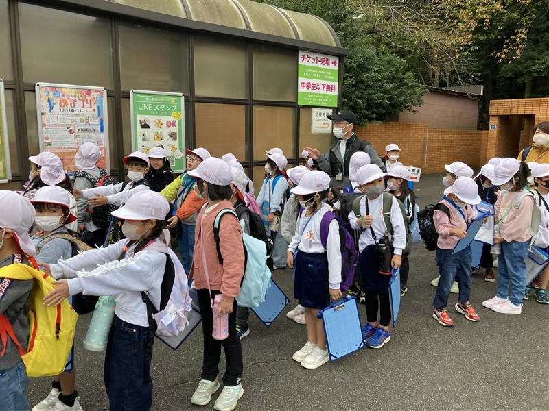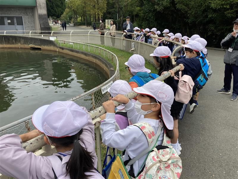 11月 05 2025 1年生社会見学① ~東山動植物園~ 今日は、1年生が東山動植物園で校外学習を行います。 9時半ごろ、現地に到着し見学を始めました。「あー、いた!いた!」、「大っきぃー!」… 歓声があちこちで! 全体見学を終え、これよりチームワークを生かしての班別見学です♪