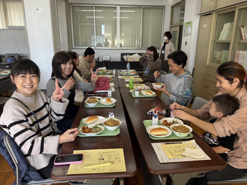 栄養教諭から給食を作る側の工夫や給食センターの作業についてお話を伺い、皆さん興味津々でした。また、その後の試食会では近くの人たちと談話しながら和気あいあいとみんなでおいしく給食をいただきました。