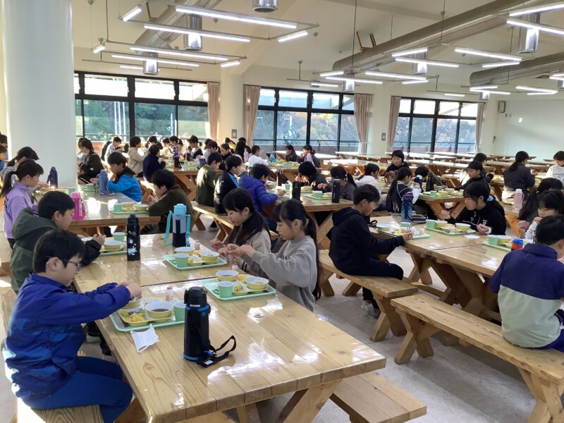 12月 05 2025 5年生「自然の家合宿 2日目」 前日の積雪もほとんど消え、青空が顔を見せてくれた2日目。 7:00の「朝の集い」を皮切りに、朝食をとり、パワー注入! 今日のメイン活動は、「野外炊事」。班の仲間と力を合わせて、美味しい「豚汁うどん」を作ります!さて、出来栄えは・・・