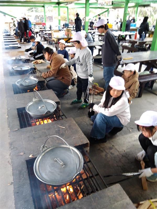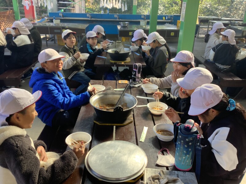 12月 05 2025 5年生「自然の家合宿 2日目」② 事前の調理実習の成果を生かし、手際よく具材を刻む姿は素敵なものでした♪ なかなか体験できない竈の火起こしなども、火の具合をよく見ながら見事に仕上げていました!