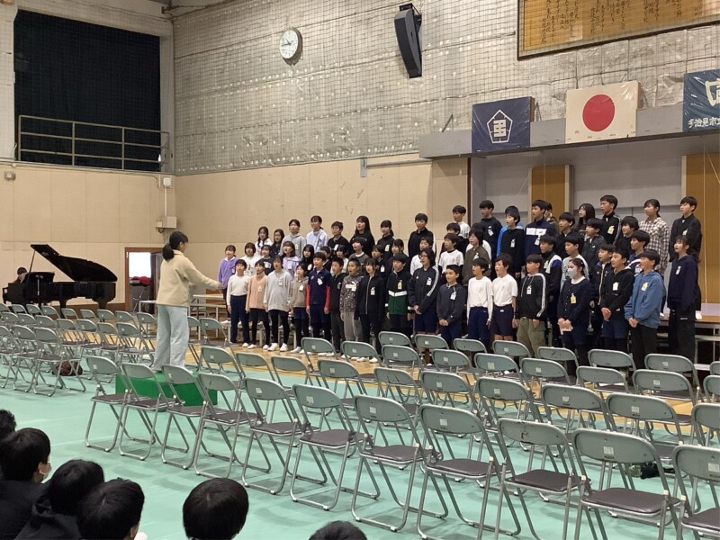 中学生の皆さんの素晴らしい表現力と迫力ある歌声に、6年生は思わず目と耳を奪われていました。演奏を聴き終えた後には、「迫力がすごかったです」「誰一人として恥ずかしがらずに堂々と歌っていて、見習いたいと思いました」「僕たちもあんなふうに歌いたいです」といった感想がたくさん聞かれました。憧れの気持ちが一層強くなったようです。