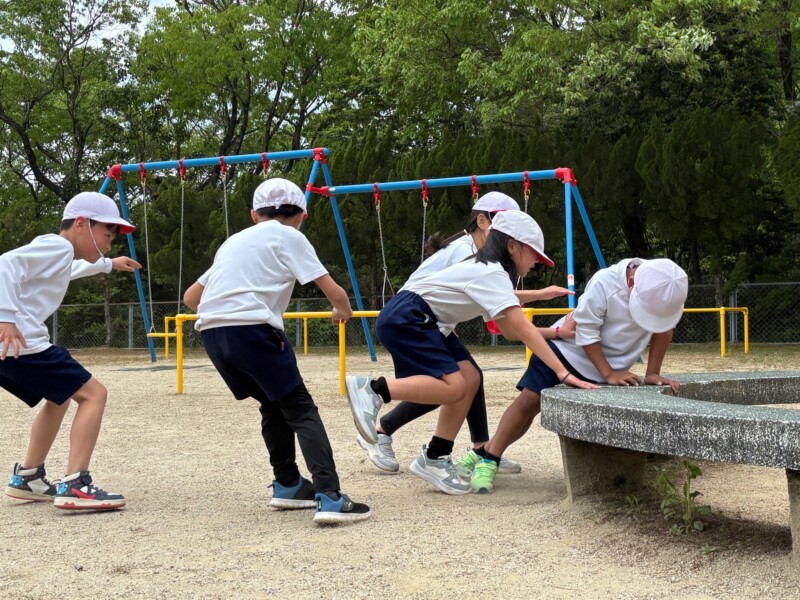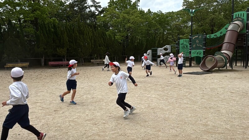 4月 20 2026 仲間つくり活動(3年生) 旭ヶ丘公園での3年生の仲間つくり活動の様子です。いろいろな遊びを計画して、みんなで遊びました。みんなで思いきり遊んだからとっても気持ちがよかったです! なんの遊びでしょうか? つかまった!