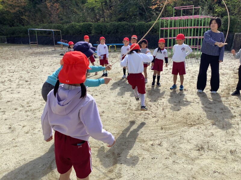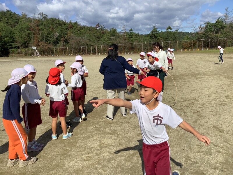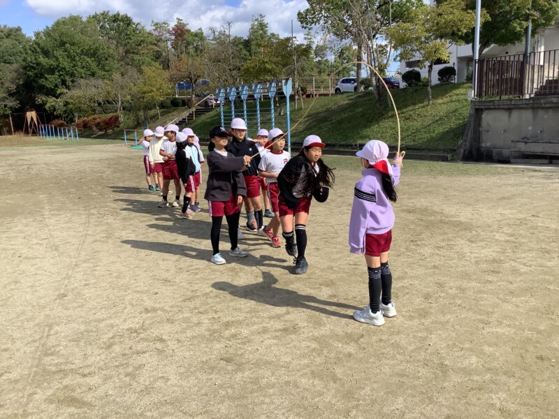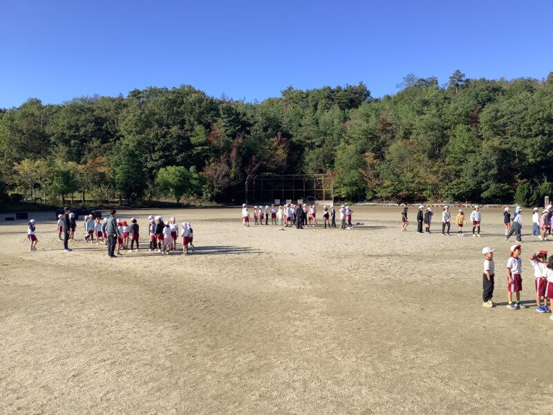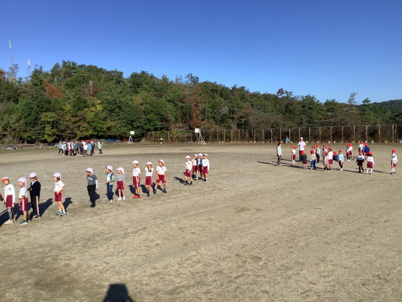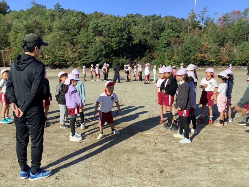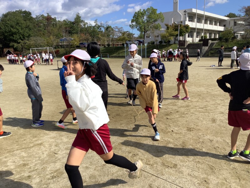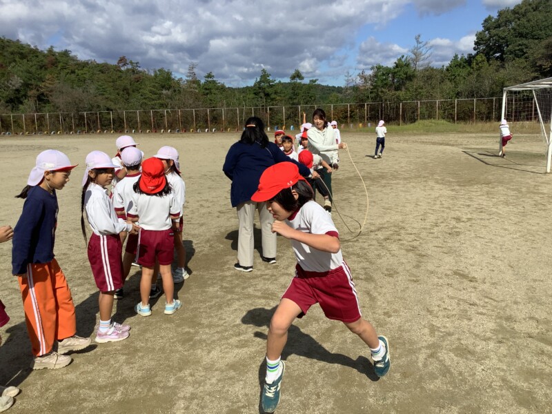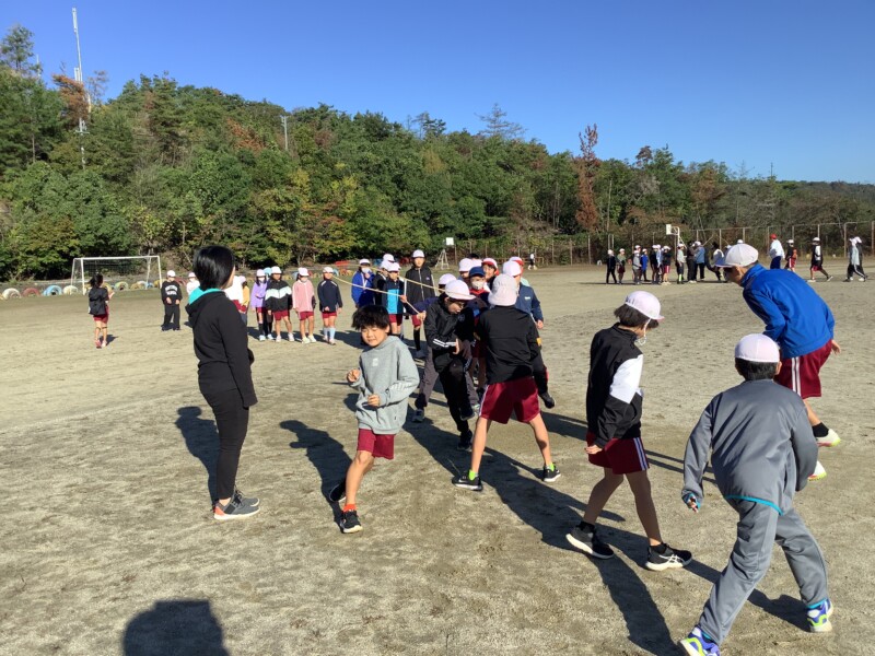 今朝も秋のすがすがしい天気です。グラウンドで全校一斉に8の字跳び練習会がありました。各学級で練習していても、全校でそろってする練習は少し緊張感があるようです。
