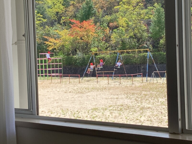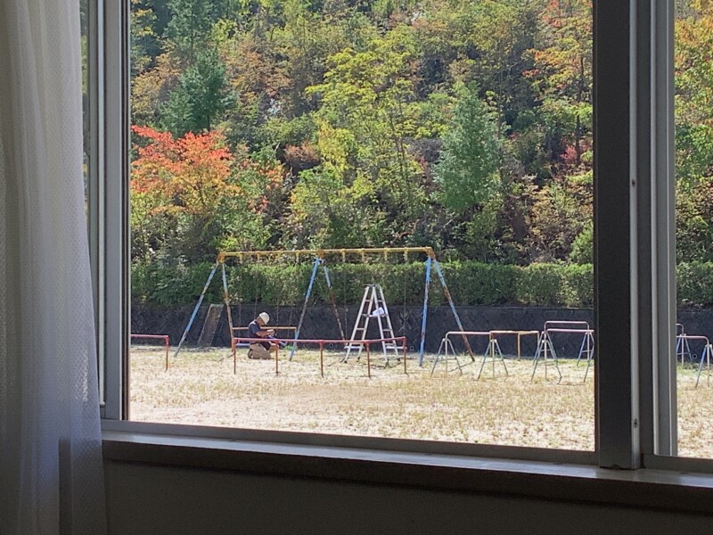 休み時間前に、ふと外を見ると、遊具の安全点検をしてくださっていました。