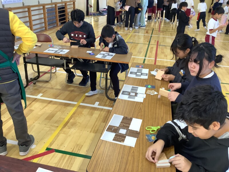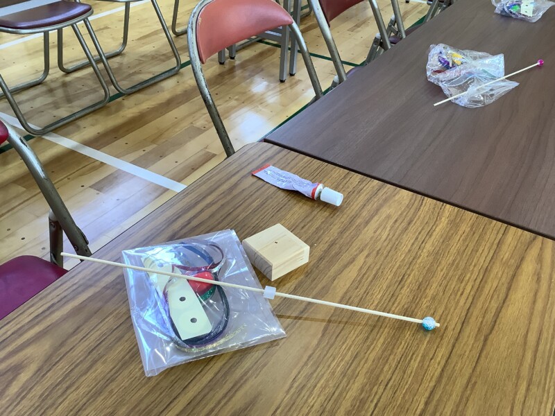 ほかにもいろいろなおもちゃ作りセットがあり、説明を聞きながら制作していきます。