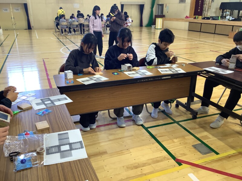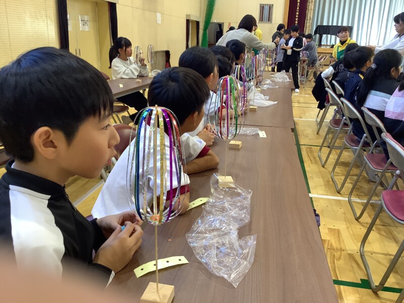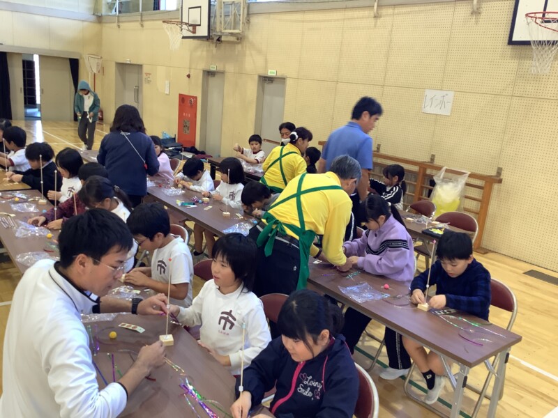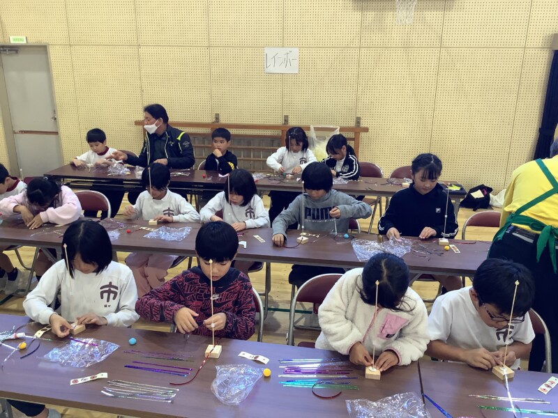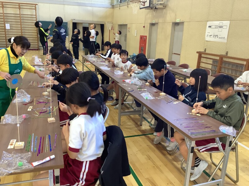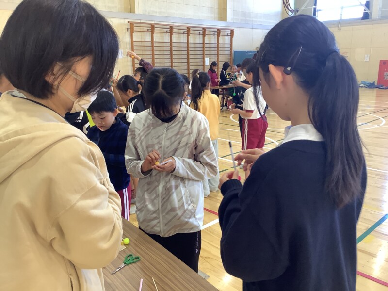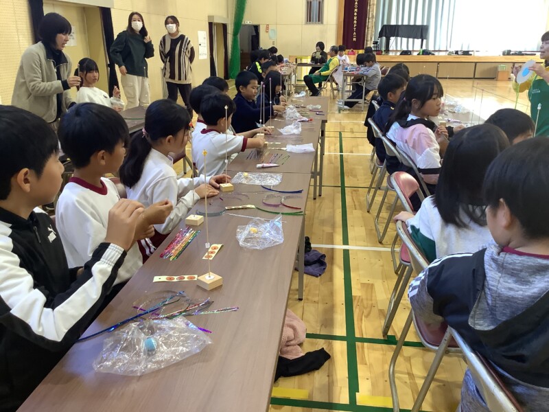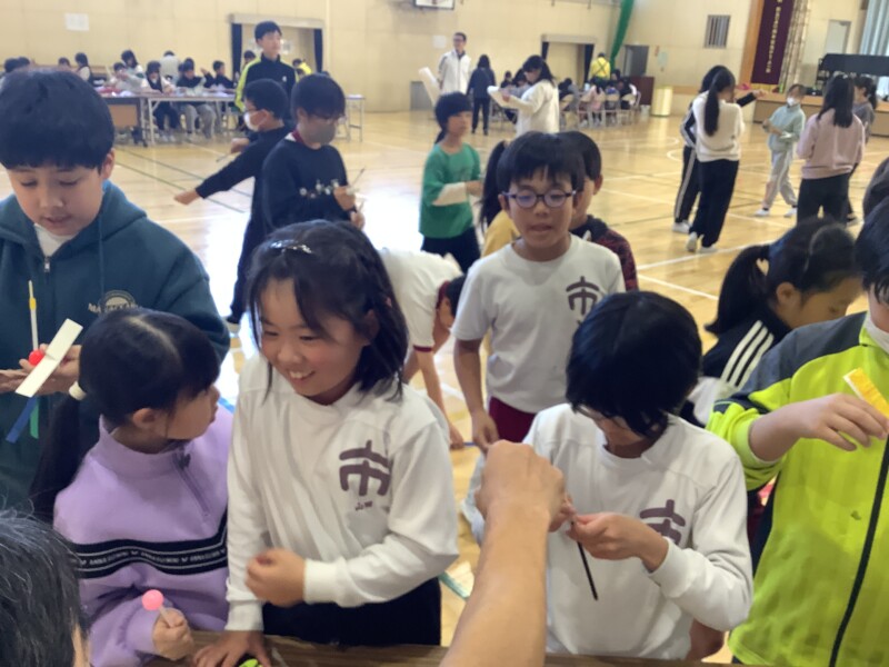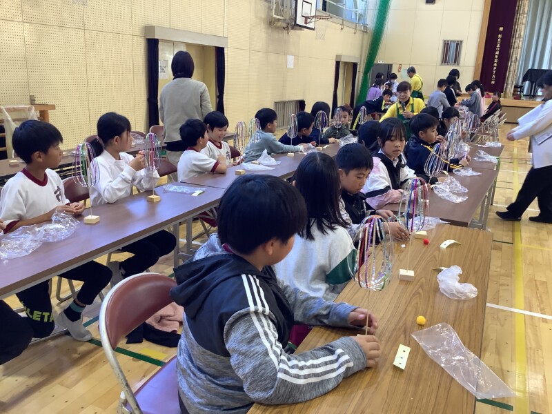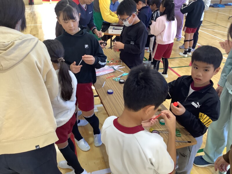 全体での授業後に、ちょっと科学的な要素を取り入れたおもちゃ(?)づくりです。こちらも大盛況。様々なブースが用意されていました。