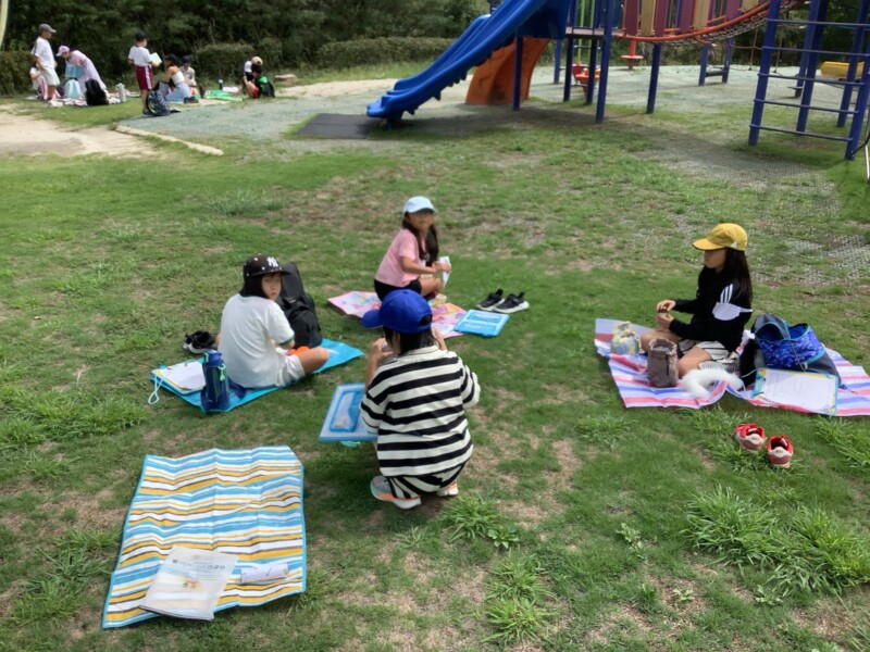 隣接する公園でお弁当です。心地よい天気になって本当に良かったです。