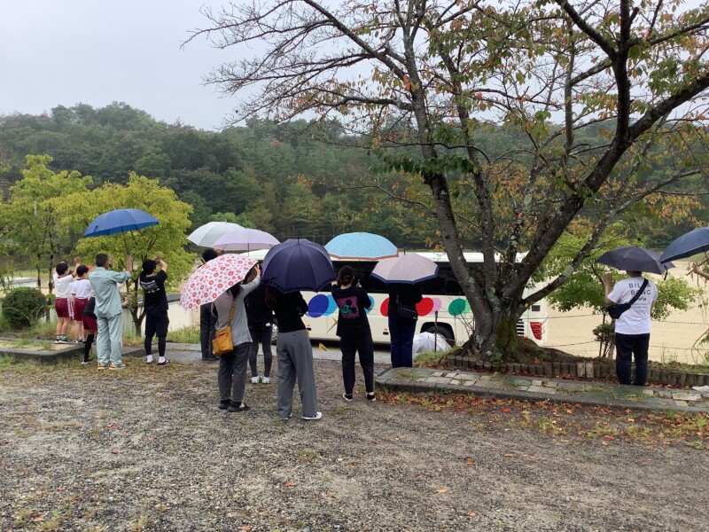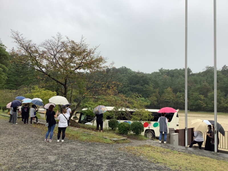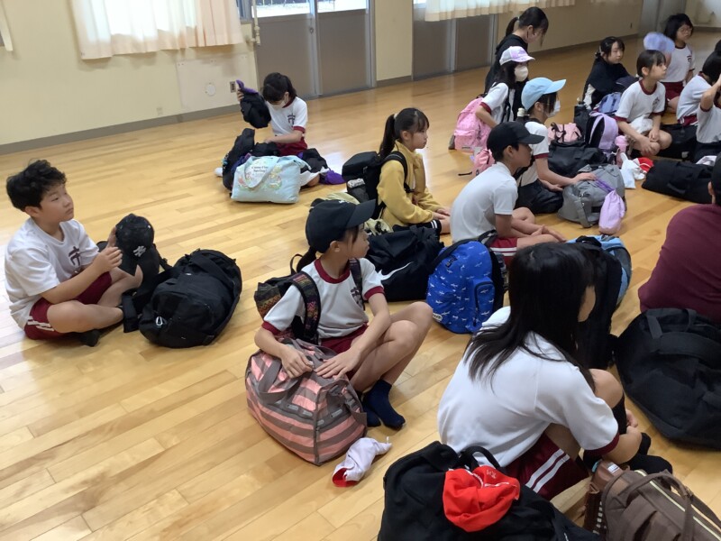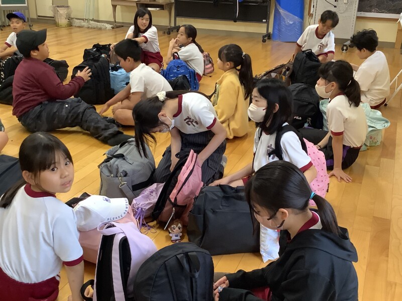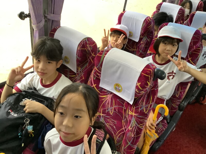 5年生の子はどんな天気でも元気いっぱいに出発の時を迎え、集まってきました。ワクワクドキドキしますね。