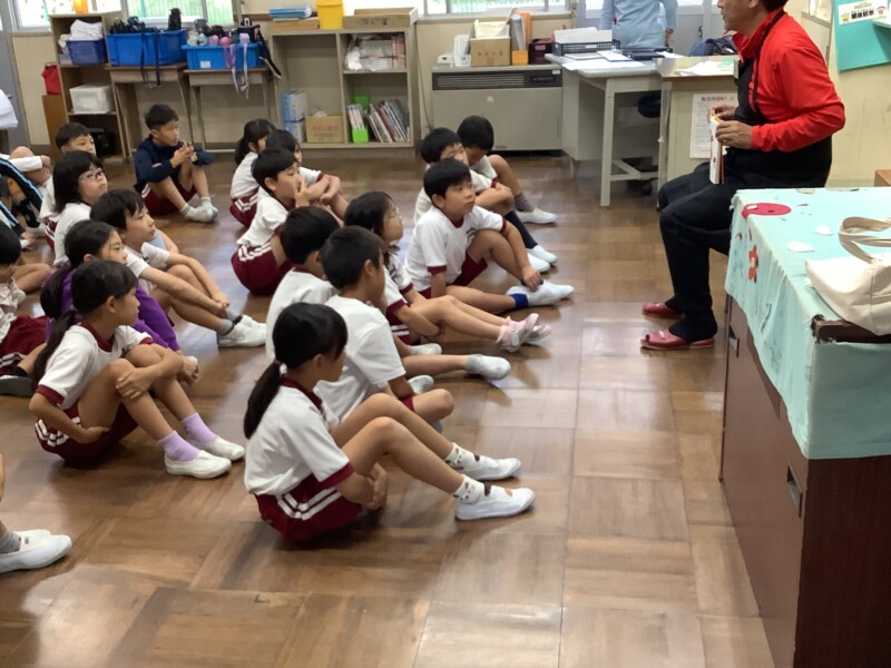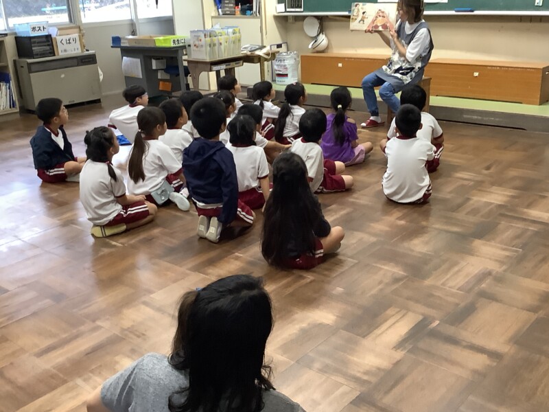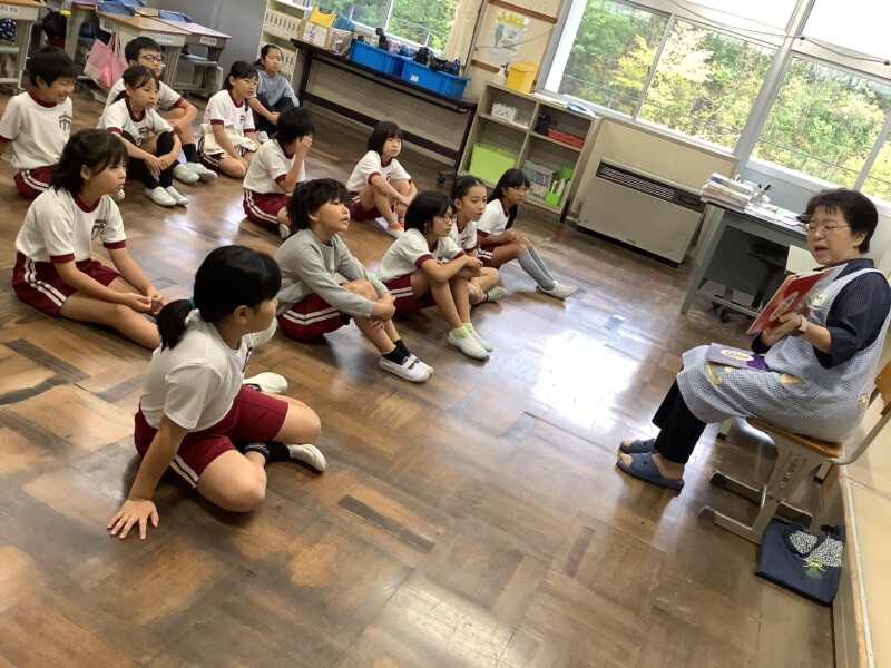 5年生が出発してしばらくすると、はっぴぃクローバーさんによる読み聞かせが始まりました。いつもありがとうございます。