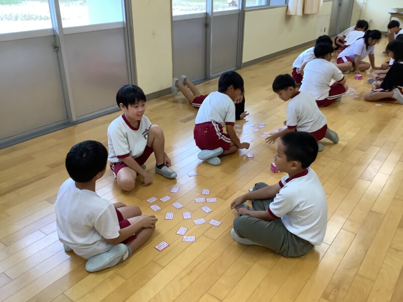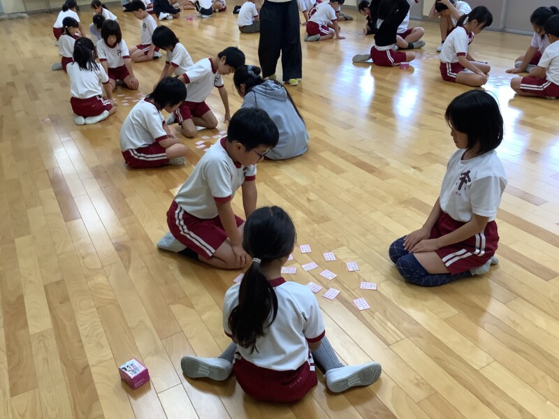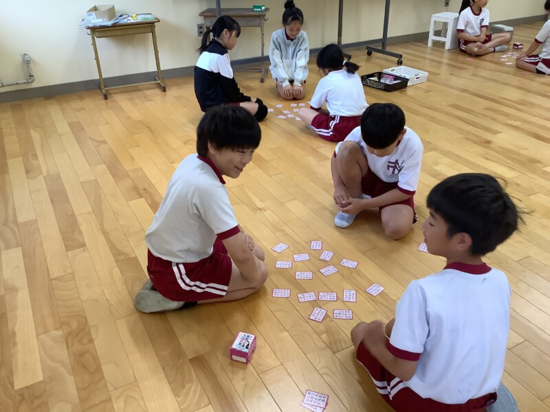 さて、学校では3、4年生が一緒に百人一首大会を行っていました。初めの一言二言でバシッと札をはじく子、すごいねえ~