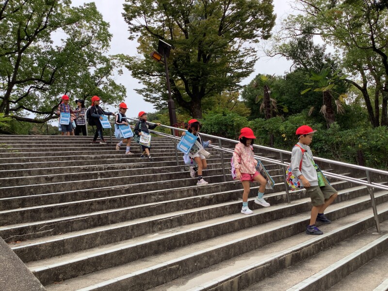 出発するとすぐに、「ダイハチさんや!」「ダイハチさん、行ってきま〜す!」とみんな言うのでどなたかと思えば、第八公園への挨拶でした😁 そのあともトンネルさんにもマクドナル⚪︎さんにも、電車さんにも、みんなに大きな声で挨拶する1年生の子は、とてもすてきです😍