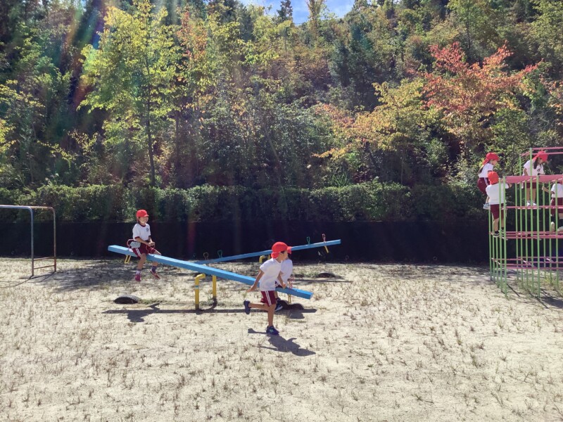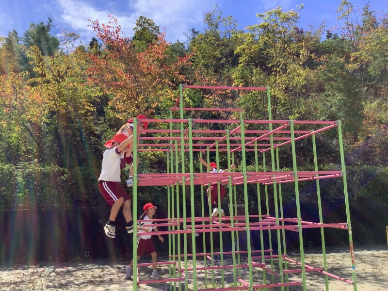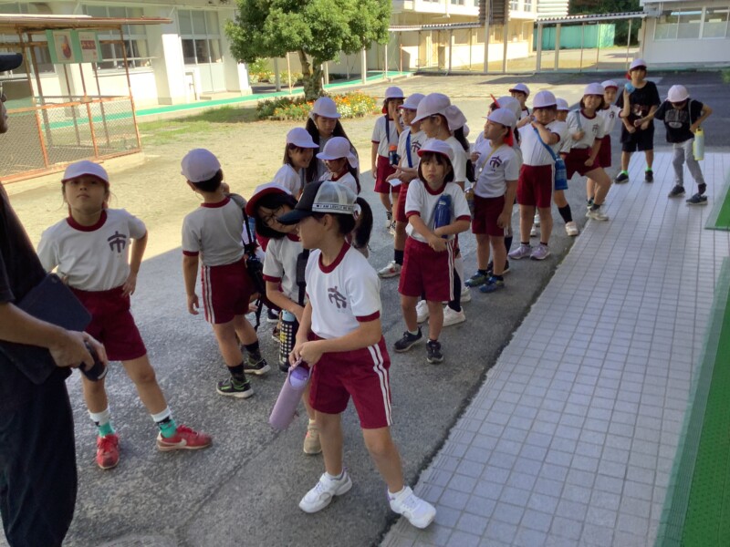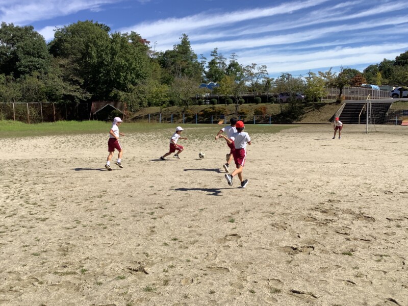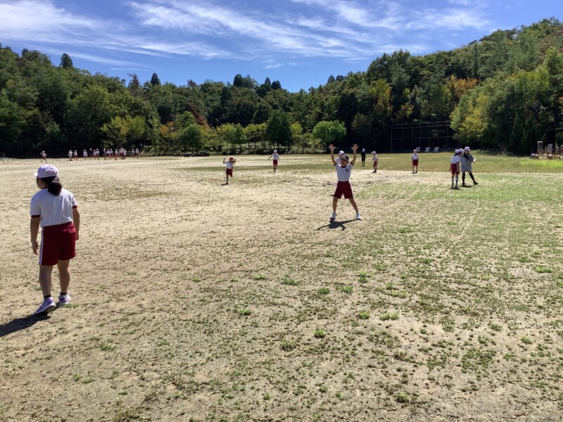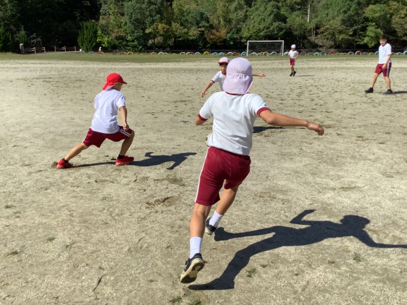 「どこ行くの?」と尋ねたら、「グラウンドで太陽と影の勉強!」と教えてくれました。