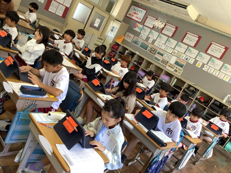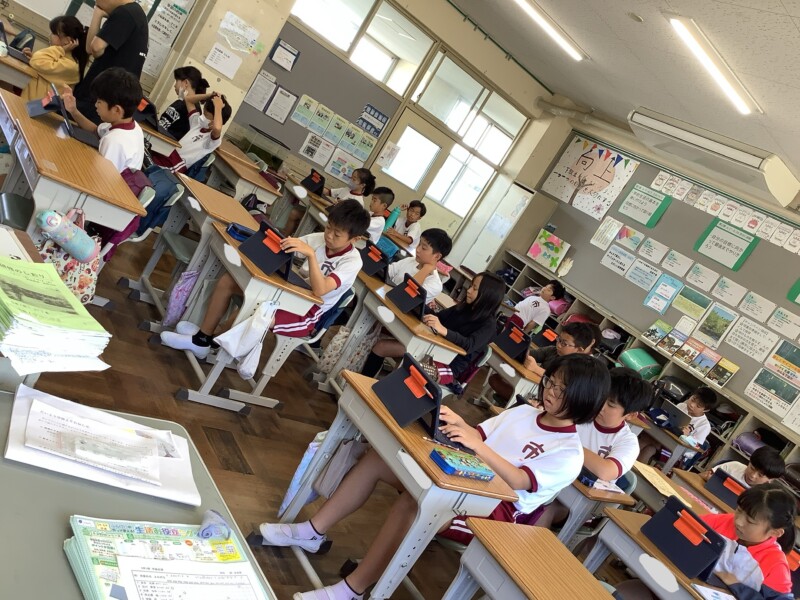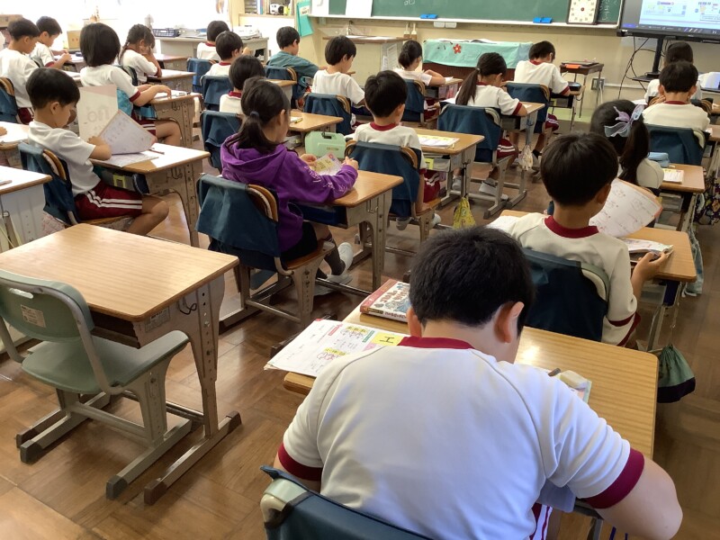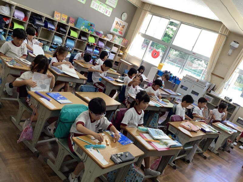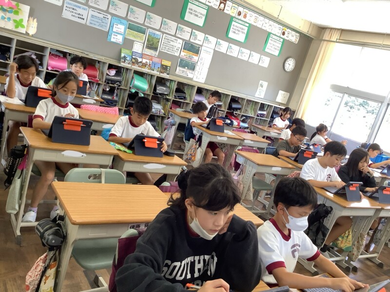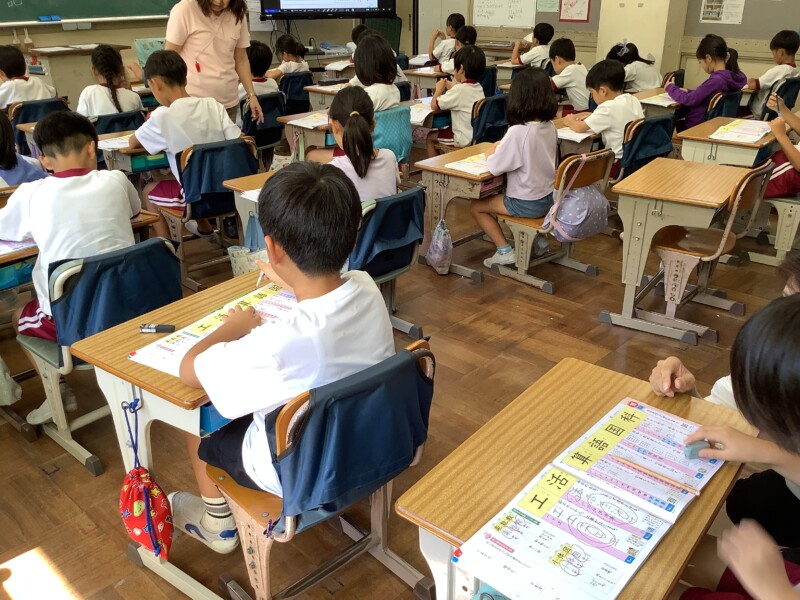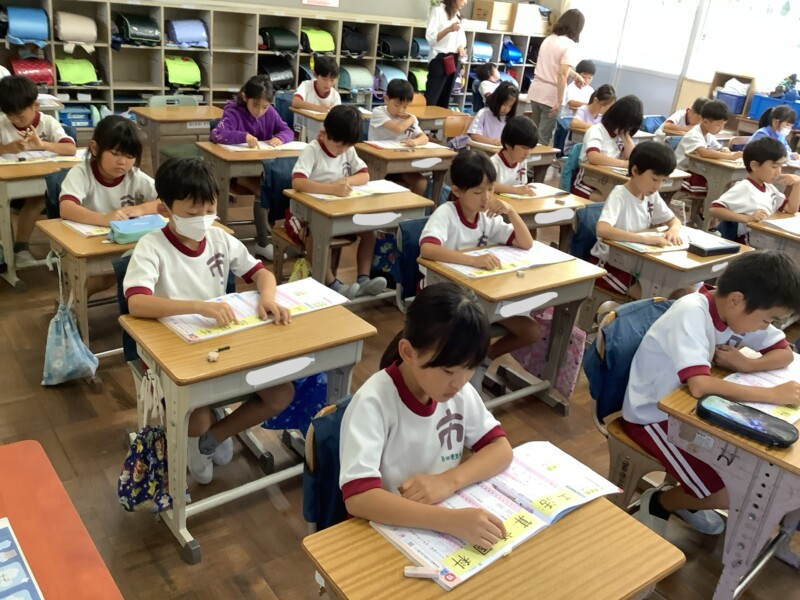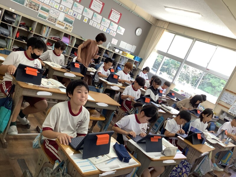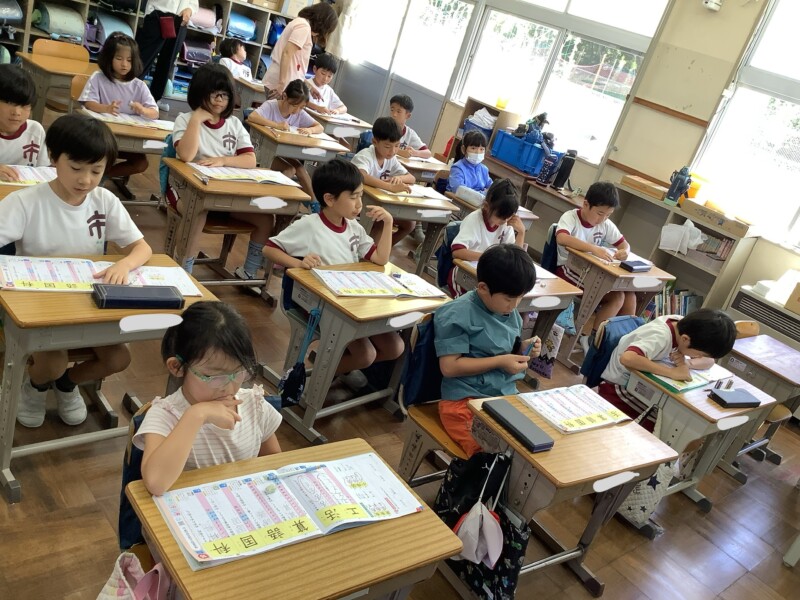 カタカナの勉強。みんなすごく集中して丁寧に書いていました。どの学年もタブレットばかりにならないように、書くことも大切にしています。