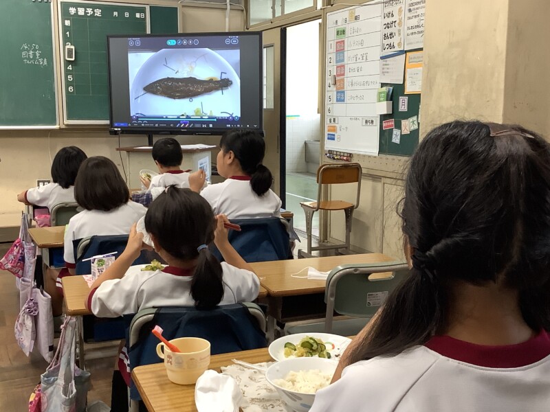 昨日の給食に「アユの甘露煮」が出ました。とても軟らかく煮てあり、頭から全部食べることができました。「こうやって作っているんですよ!」と映像が流れ、作ってくれる人にも感謝しながらいただきました。