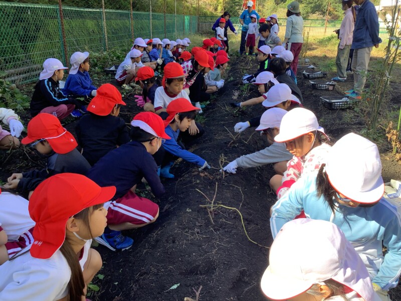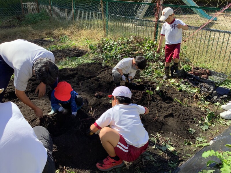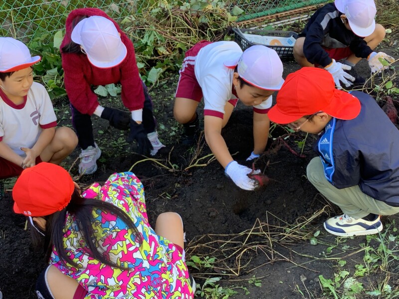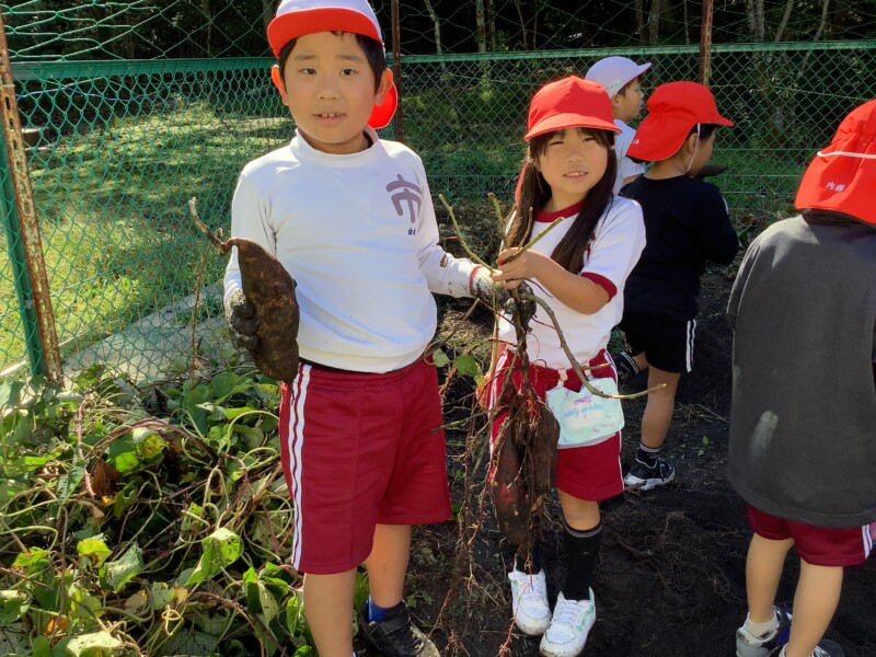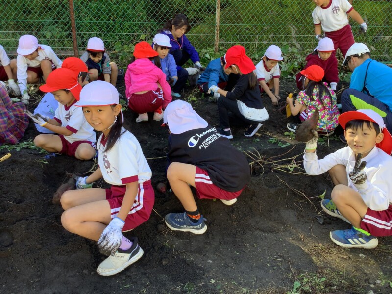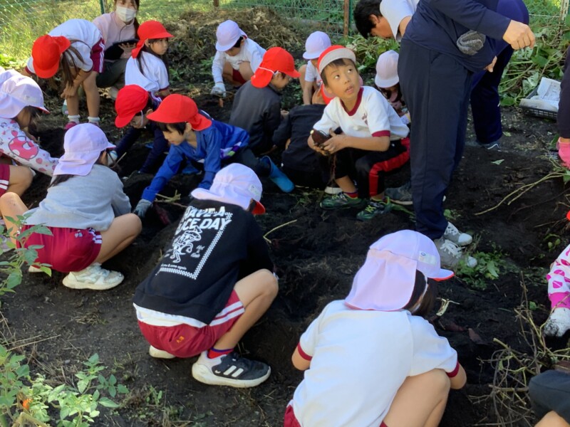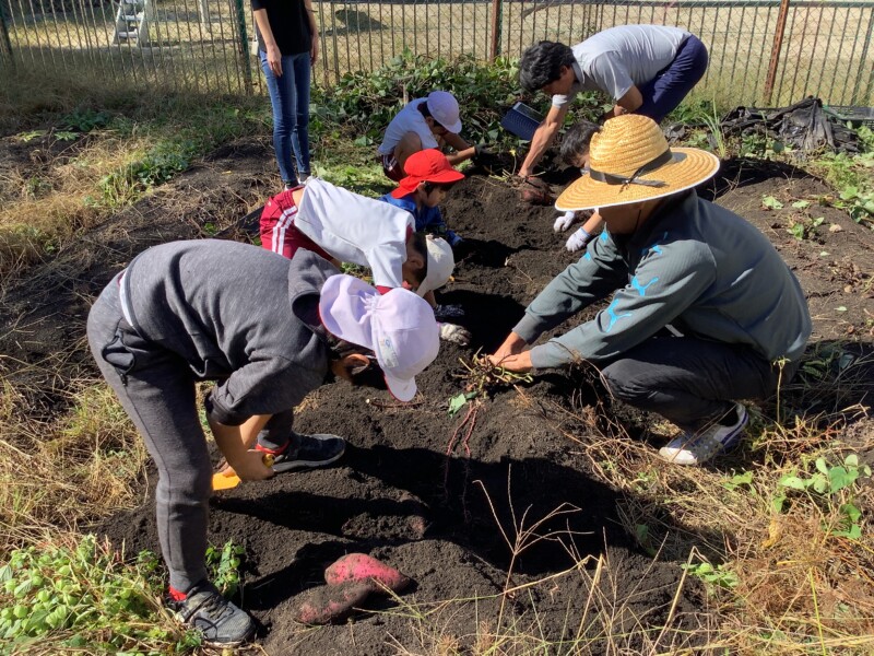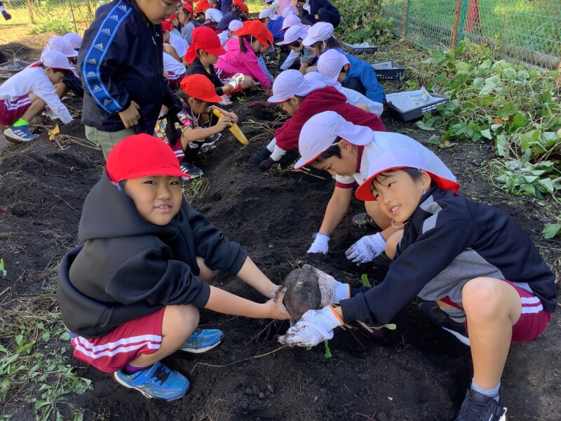 今年は猛暑続きのため、様々な野菜の生育が悪かったとのことでしたので、1,2年生が植えたサツマイモは地中でどんな風に育っているか心配でした。これは掘るまでわかりません。