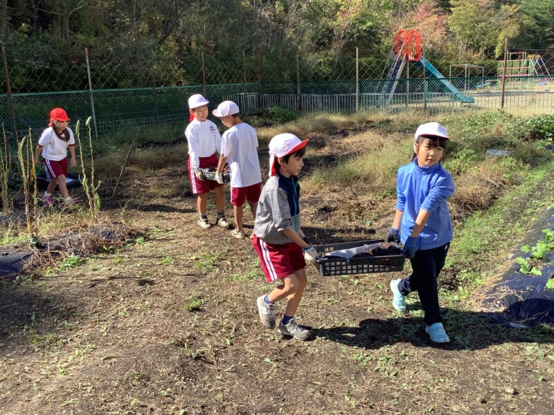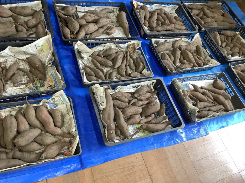 取れた芋はみんなで運んで、しばらくの間、風通しの良い場所で熟成させます。