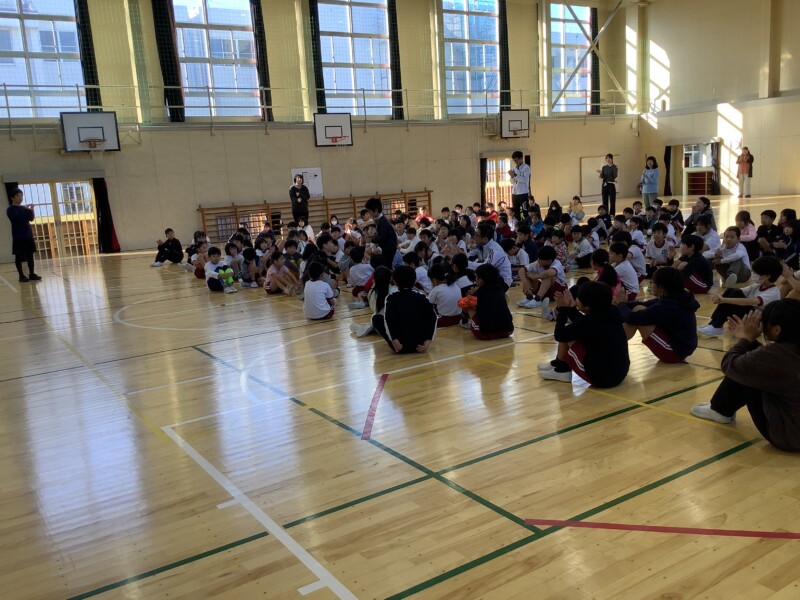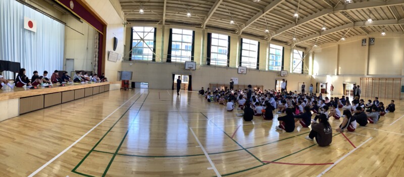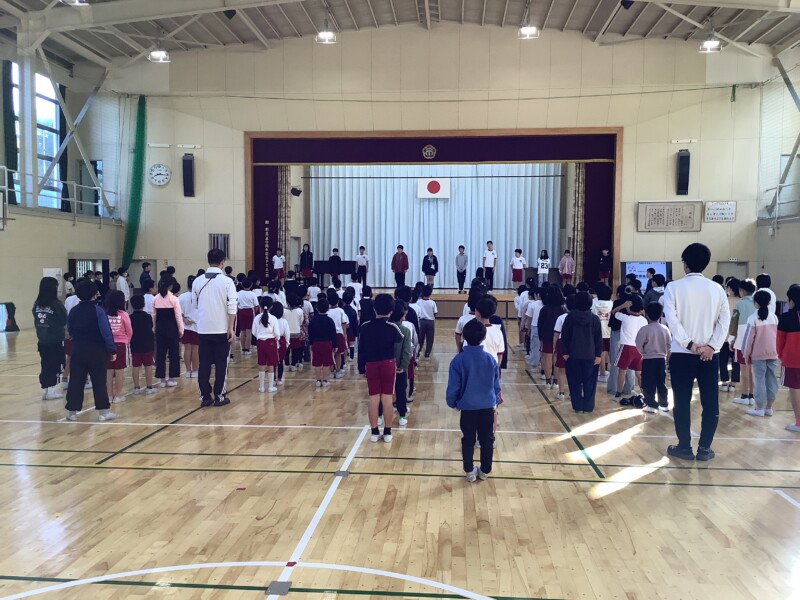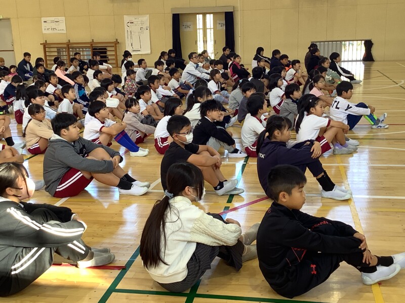 爽やかな朝に、さわやかな集会を子供たちが開いてくれました。体育委員さんによる「8の字跳び大会」についてです。