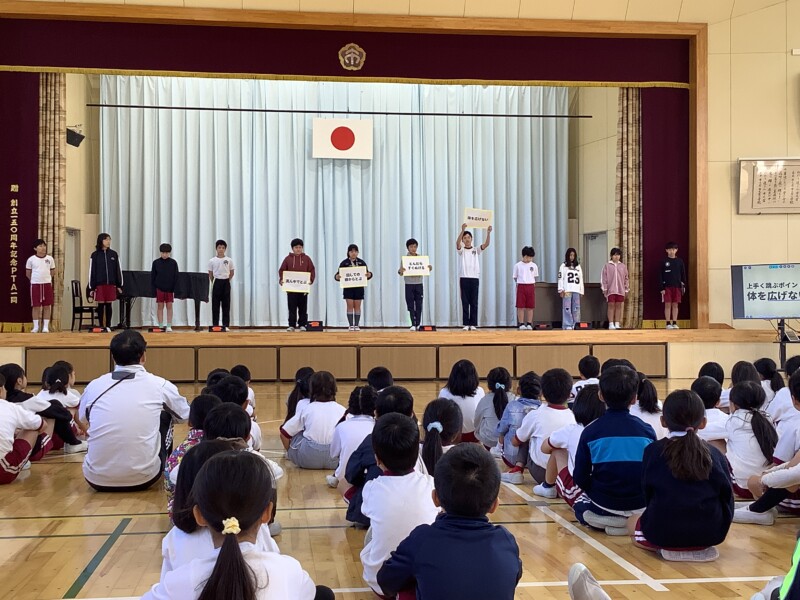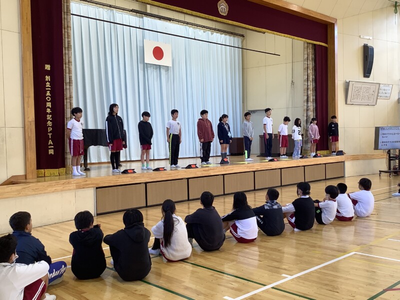 体育委員さんが、「こんなことに気を付けるといいよ」をテクニック面と雰囲気づくりについて話してくれました。
