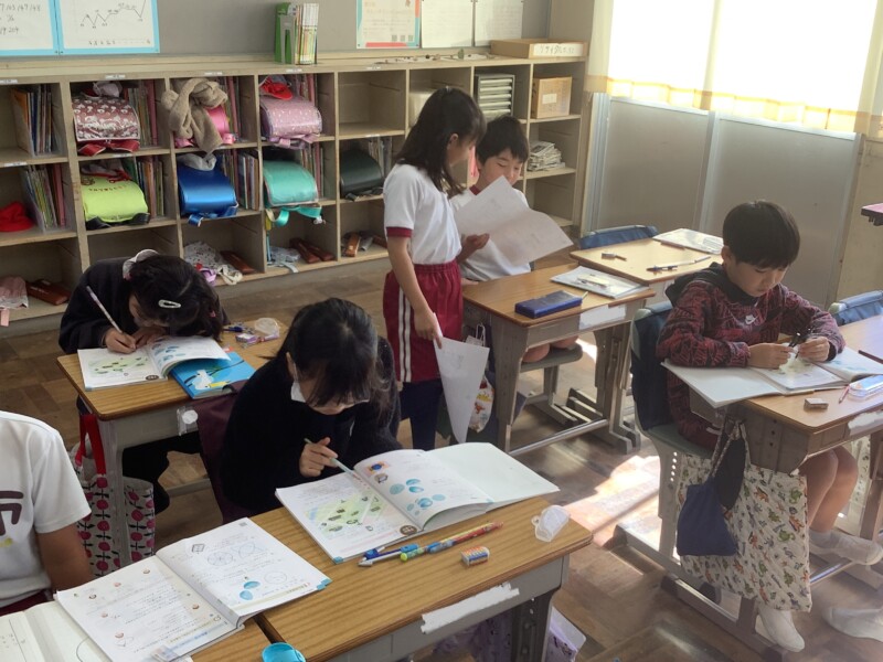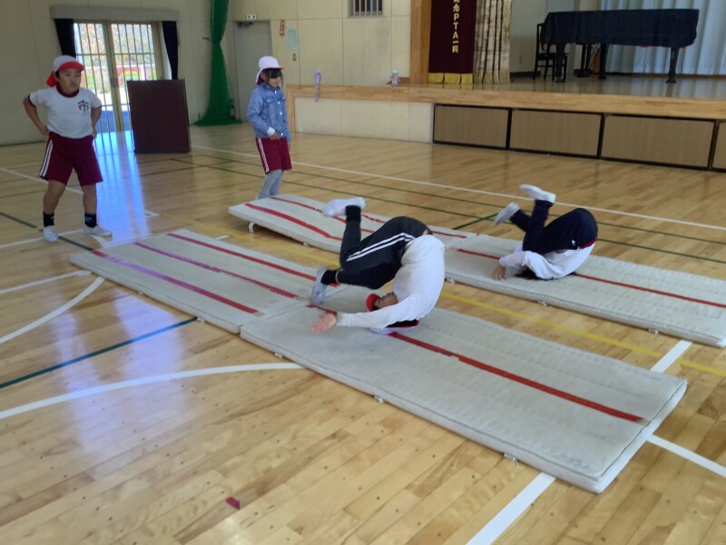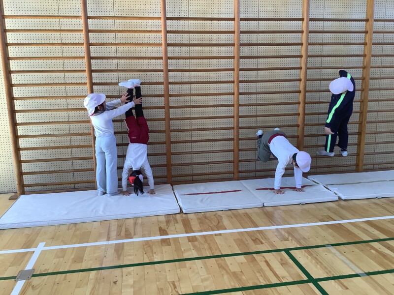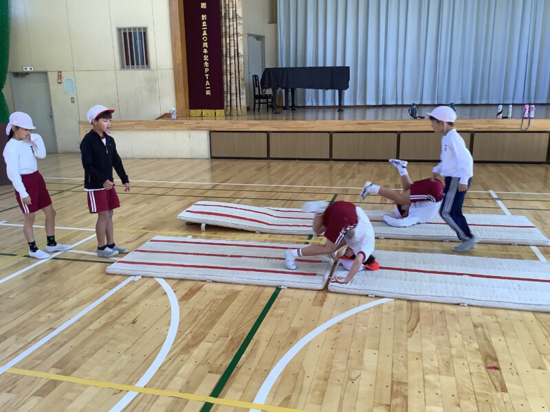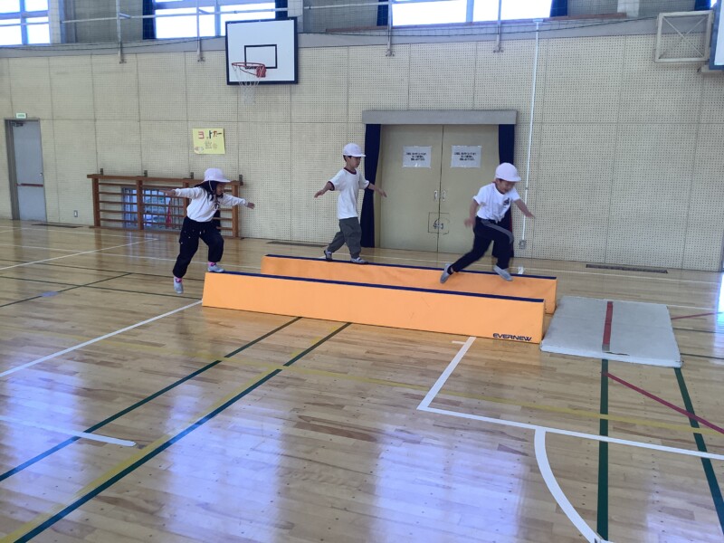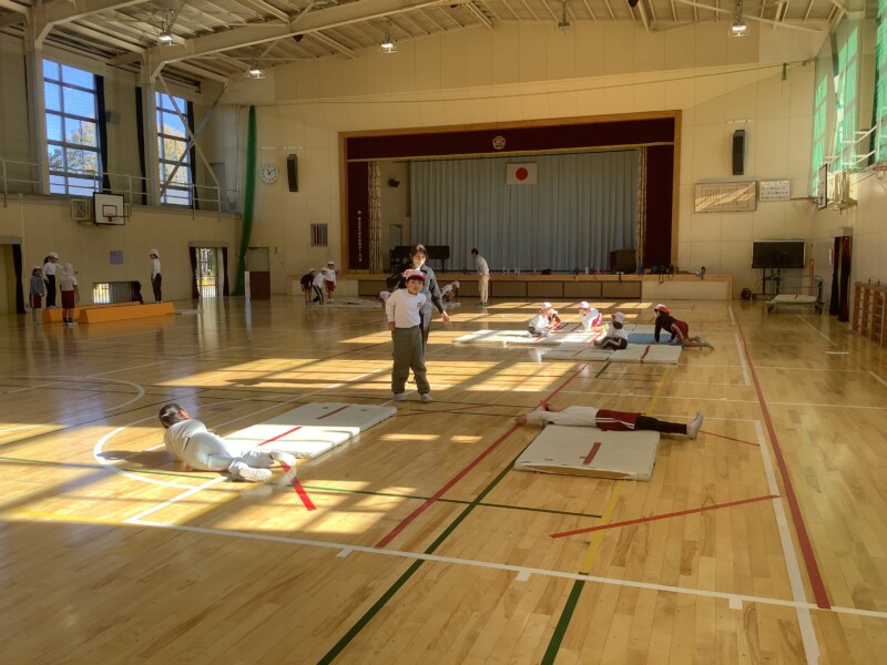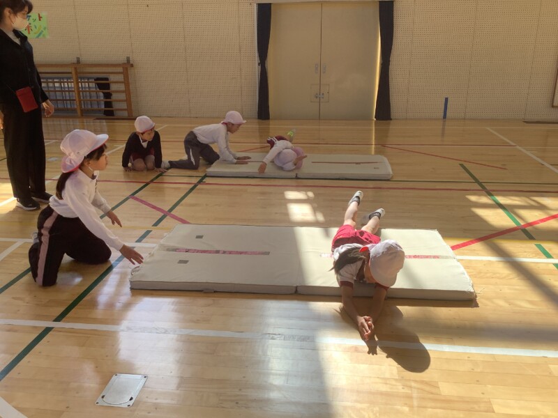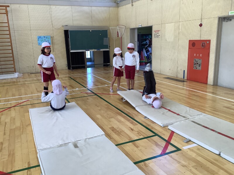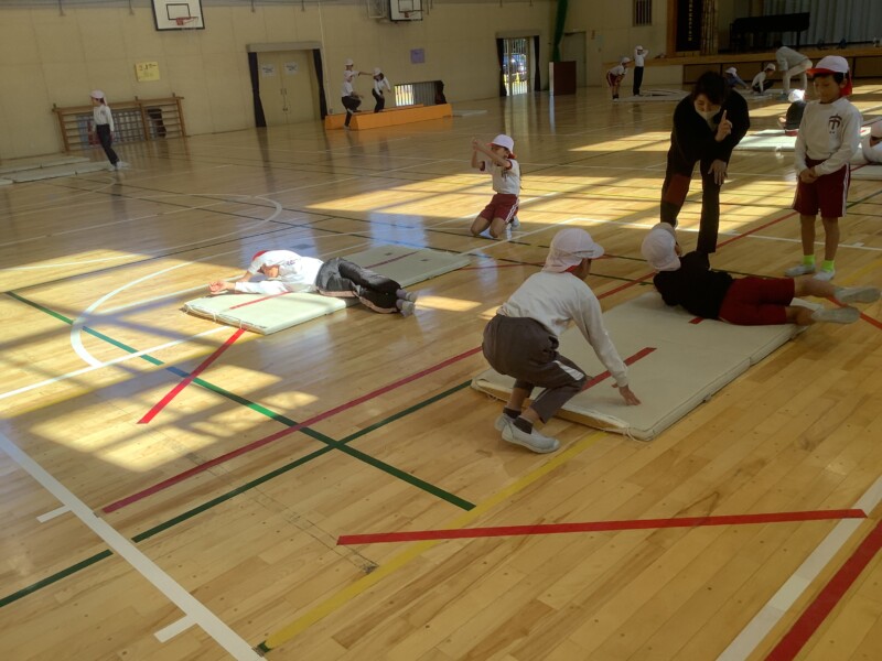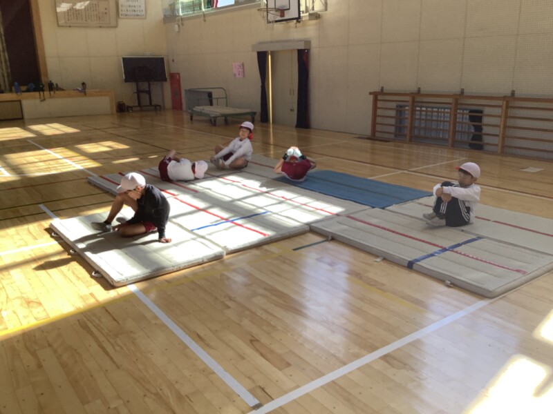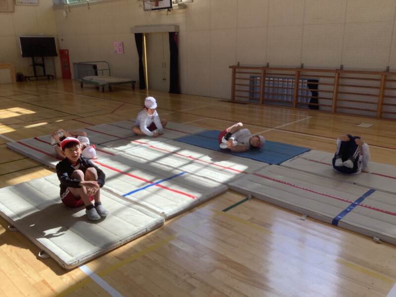 こちらは体育で、転がったりバランスをとったりの全身運動でした。自分の体、思う通りに動かせたかな?