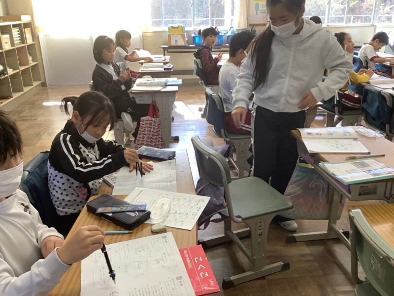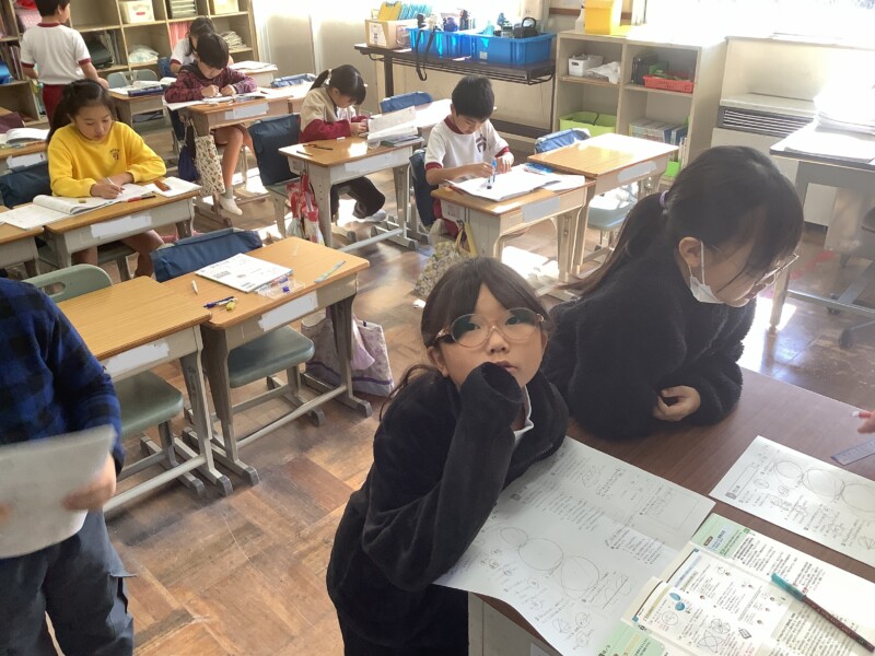 こちらはまたコンパスを使っている場面でした。前回よりスムーズに円が描けるようになりましたか?