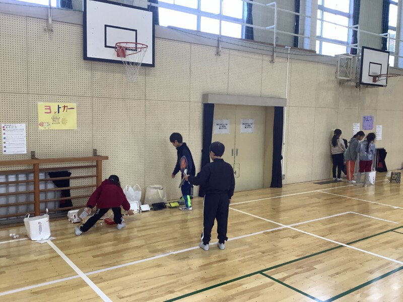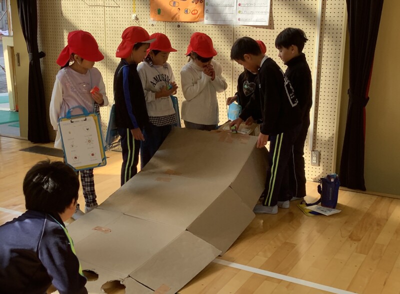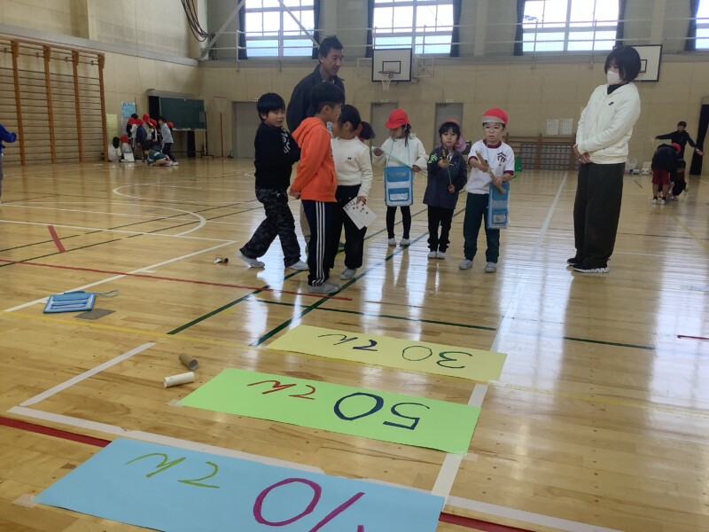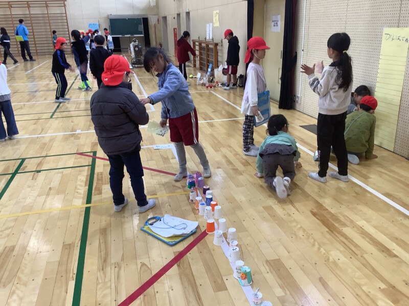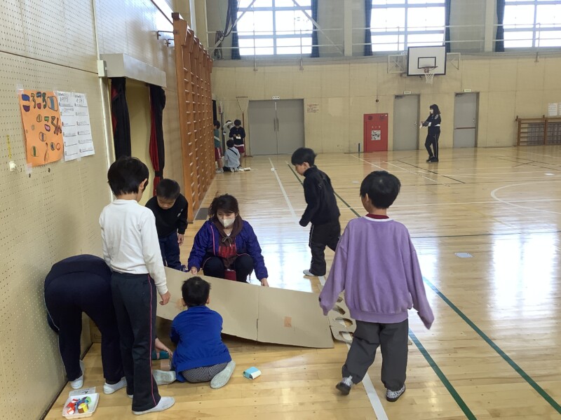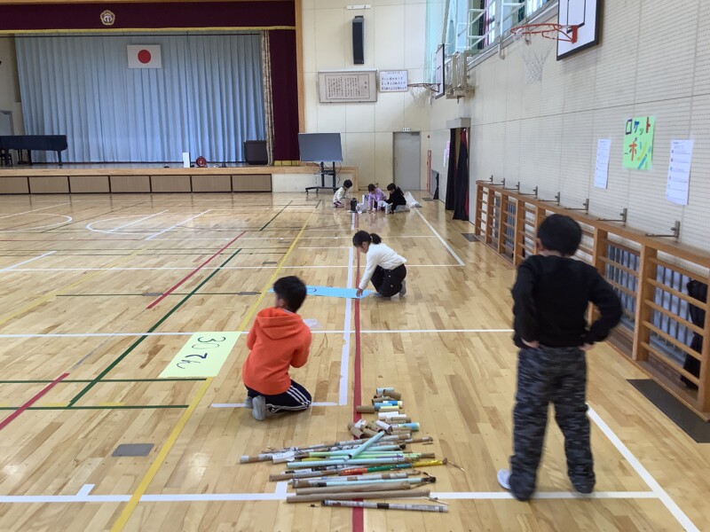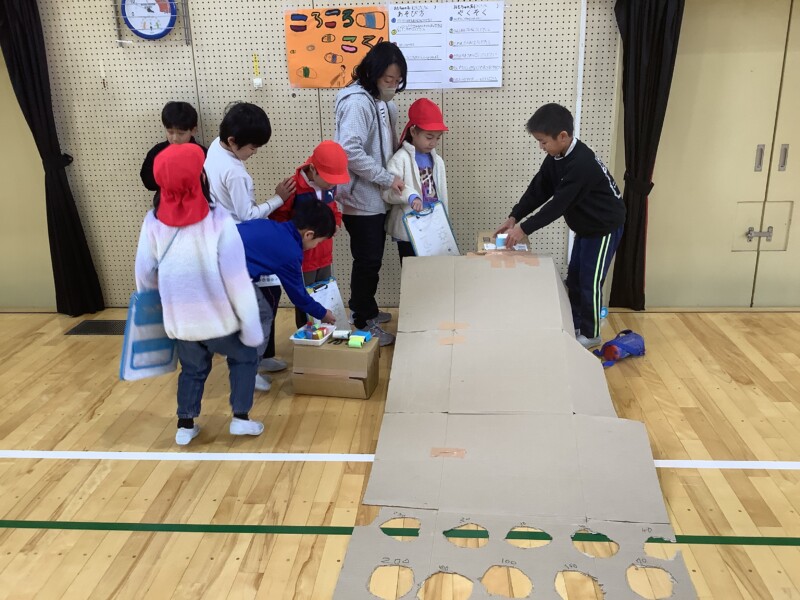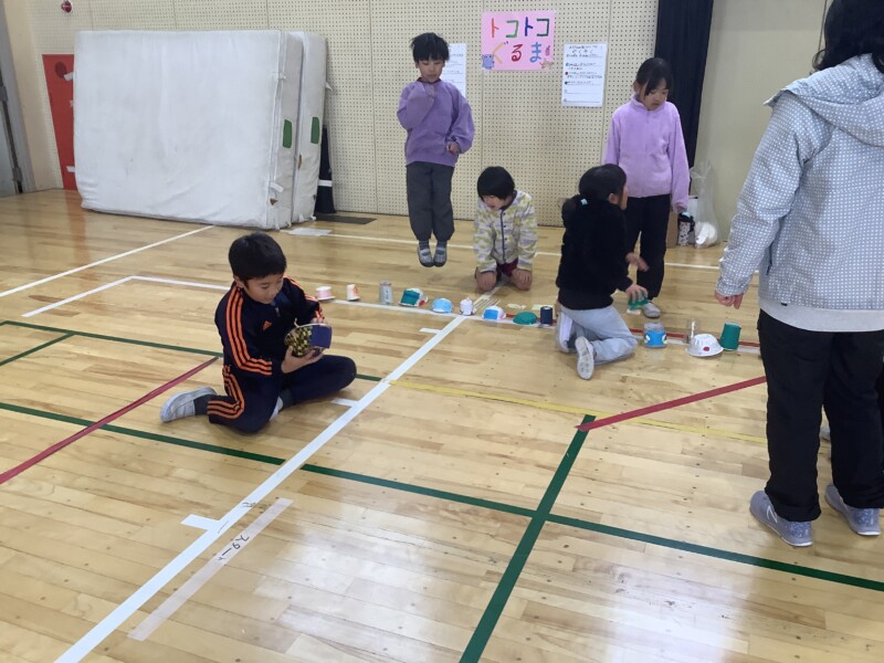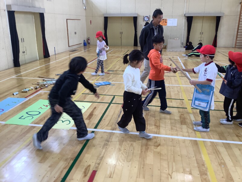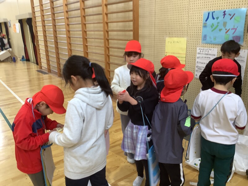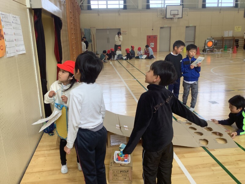 2年生の子が一生懸命に作ってきたおもちゃなどを使って、1年生の子と一緒に遊びながら触れ合う「おもちゃフェスティバル」がありました。