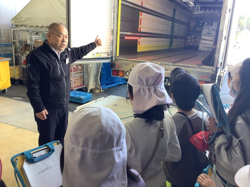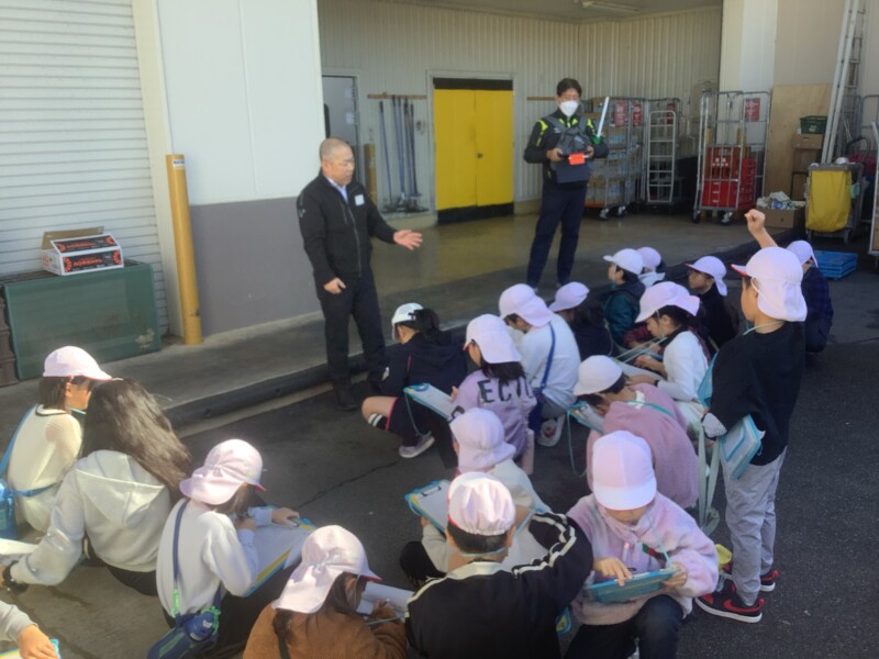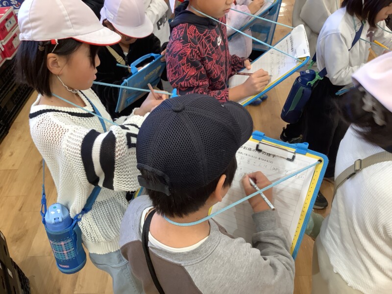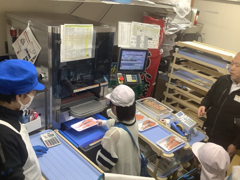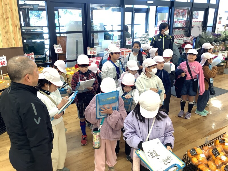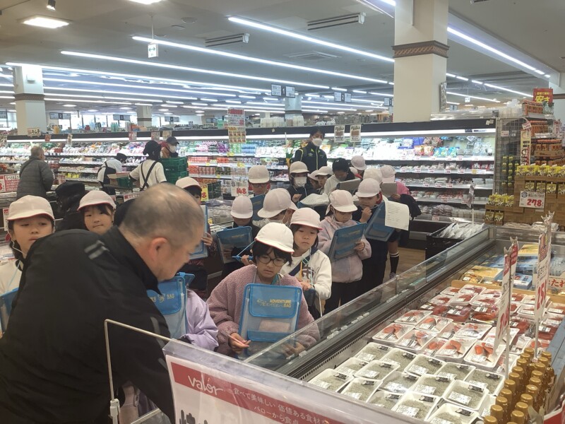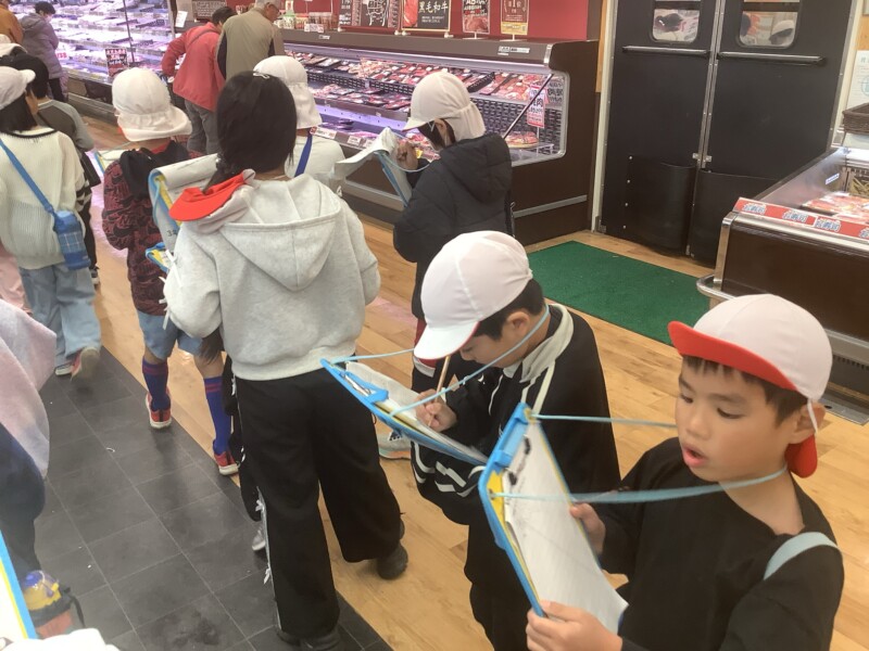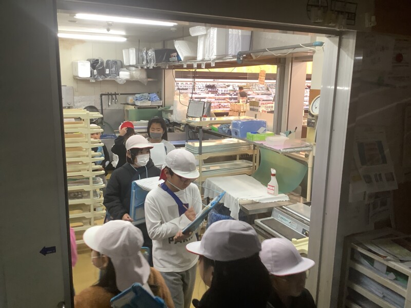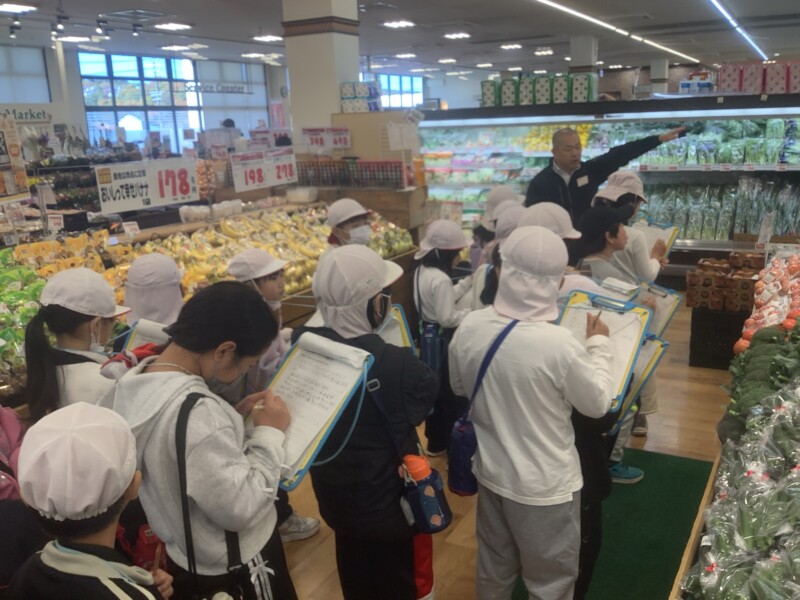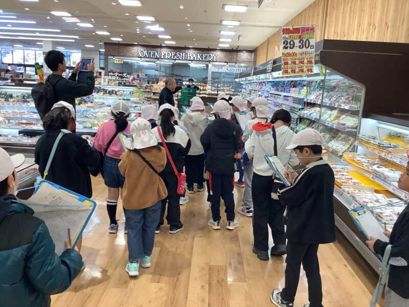 さて、3年生が食品スーパーを訪問して、学習を行いました。「食品の安全や衛生」、「地域とのつながり」、「職業の理解」、「食べ物全般に関する仕組み」などを学ぶためです。