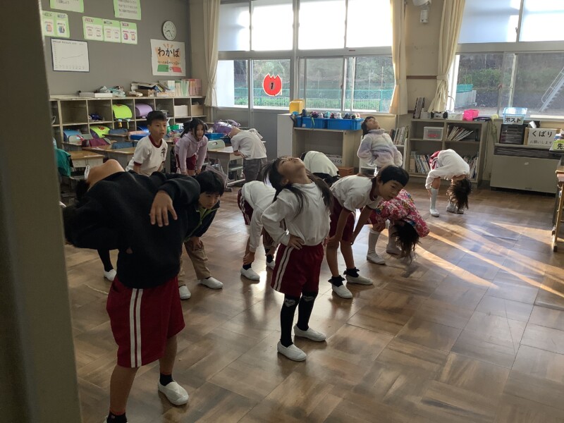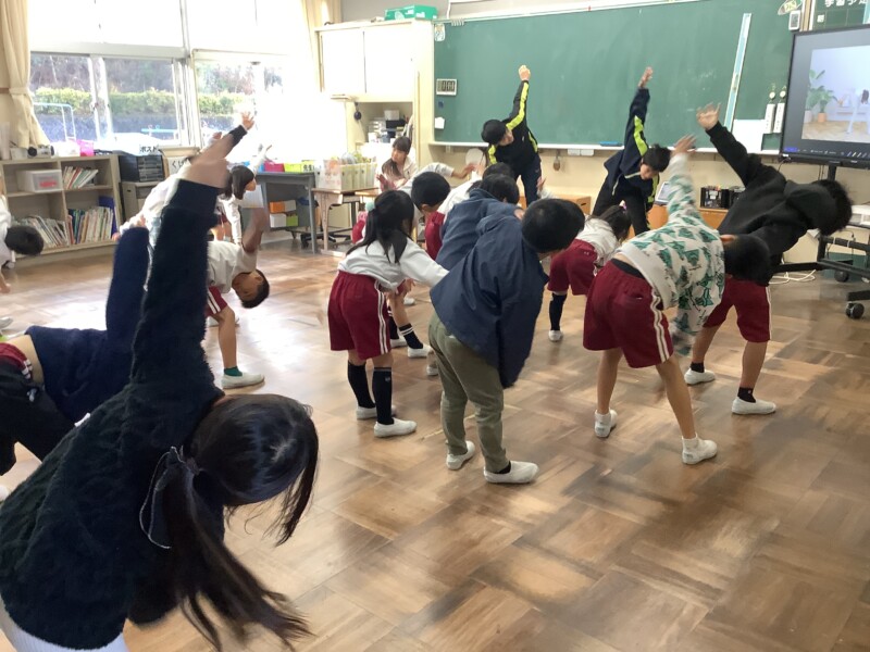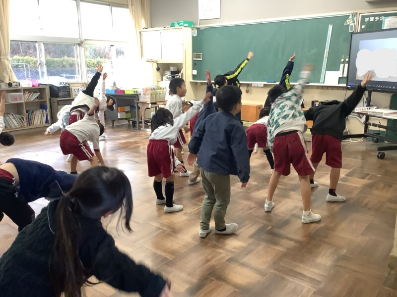 朝の運動の時間に、昨年度までは「足を速くする体操」を中心に行ってきましたが、今年は総合的に体を動かすことをテーマに行っています。