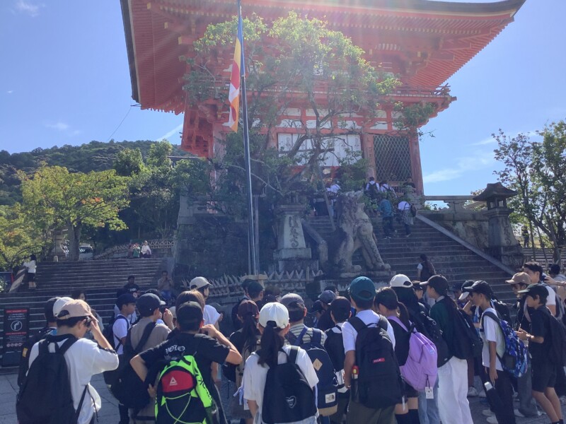 10月 02 2025 【6年生】修学旅行① 10月2日、6年生修学旅行1日目。午前中に清水寺を見学しました。班の仲間と協力して上手に見学やおみやげを買うことができました。おいしい昼食をいただきました。 この後、金閣寺、二条城を見学し、奈良県へ向かいます。 保護者の皆様、早朝の見送りをはじめ、子どもたちが実りある修学旅行に行けるようにご協力ありがとうございました。歴史を学び、お土産話をたくさんできるように学んできます。
