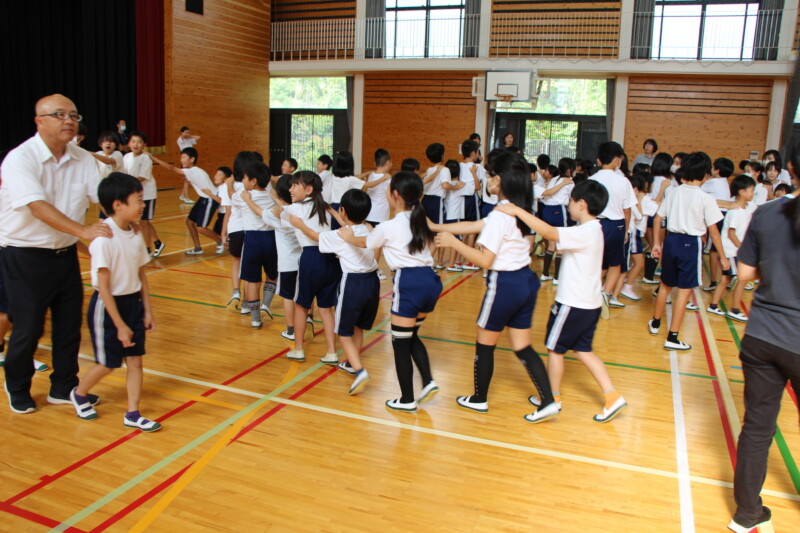 9月29日に児童会執行部が企画した全校遊びをしました。「じゃんけん列車」をして遊びました。列車には1年生から6年生までが混ざって、みんな楽しく遊ぶことができました。