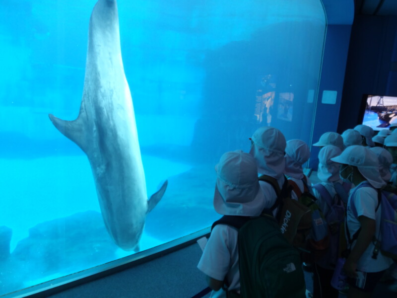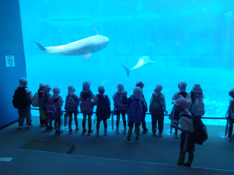 10月 24 2025 【2年生】社会科見学 10月24日に2年生が社会科見学で名古屋港水族館へ行きました。イルカショーを見たり、大きな水槽を泳ぐイワシの大群を見て、スイミーを思い出したり、水槽のトンネルを通ったり、たくさんのペンギンを見たりしました。今日の2年生の約束は「はなれない」でした。出発から手をつないで意識していた児童も多く、仲間を意識した見学ができました。