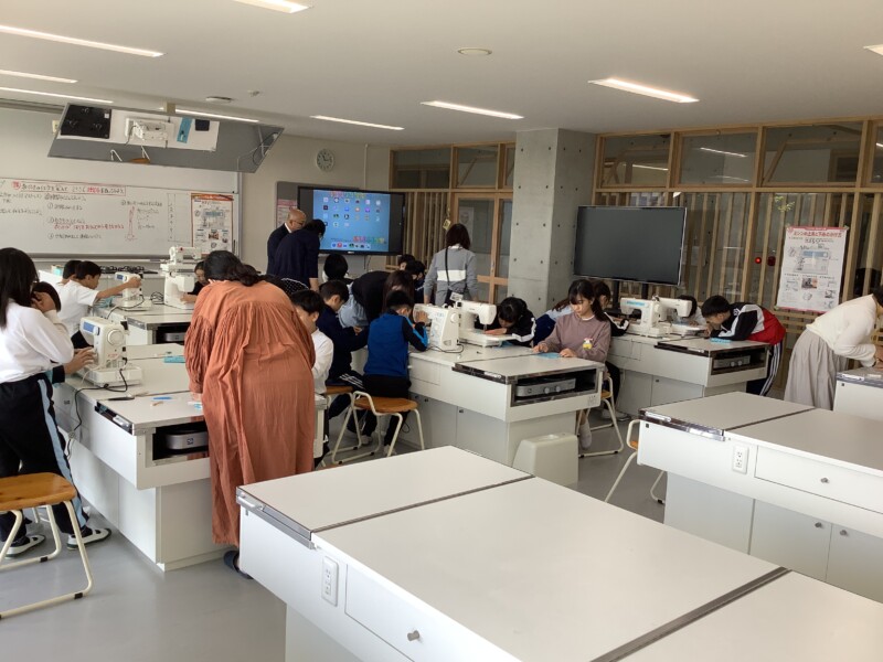 10月 29 2025 【5年生】ミシンの授業 10月29日に5年生の家庭科でミシンの授業を行いました。PTAの家庭教育委員の方々にご協力いただきました。ミシンに糸を通すところから始まり、返し縫いなどまで行いました。初めてミシンを使う経験が授業という児童も多く、家庭教育委員の方々に教えてもらったり、隣の席の子と声を掛け合ってりしながら縫い進めていました。