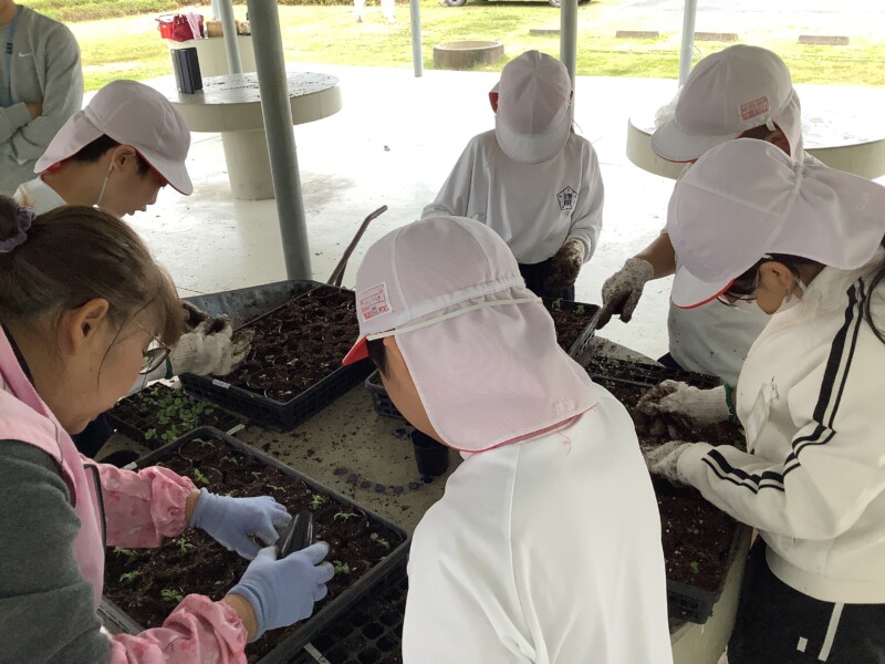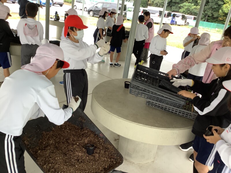 11月 05 2025 【4年生】花育 11月5日に4年生の総合学習の授業で、池田花クラブのみなさんの協力を賜り、「花育」を行いました。先月植えたパンジーとビオラ、ノースポールの種から芽が出ました。今日はその芽をポットへ移し替えました。花が咲くのが楽しみですね!