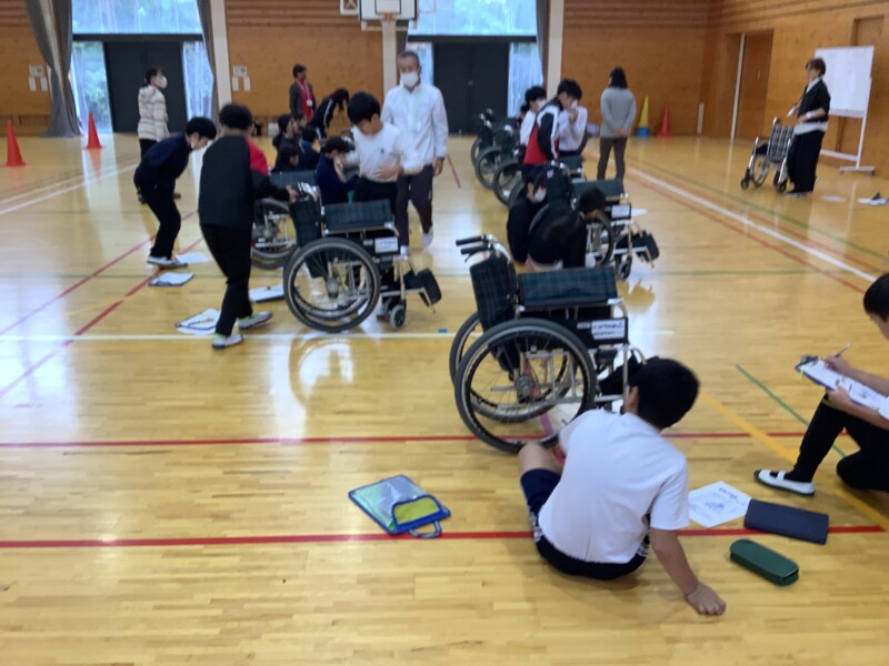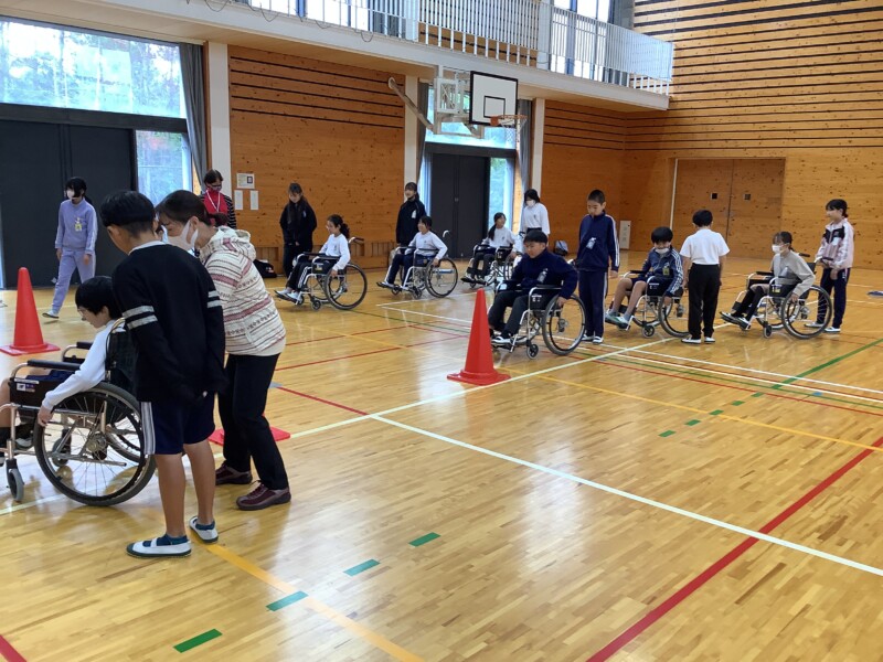11月 05 2025 【5年生】車いす体験 11月5日に多治見市社会福祉協議会の方々を講師に招き、車いす体験を行いました。車いすの使い方や気を付けることを聞き、実際に車いすを操作しました。曲がったり、止まったりするだけでも悪戦苦闘していました。また、段差では誰かに後ろから前輪を上げてもらう必要があるため、「助け合い」の大切さについて、再認識する機会となりました。車いすで生活する人の目線に立って考えることができました。