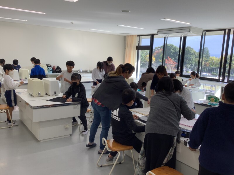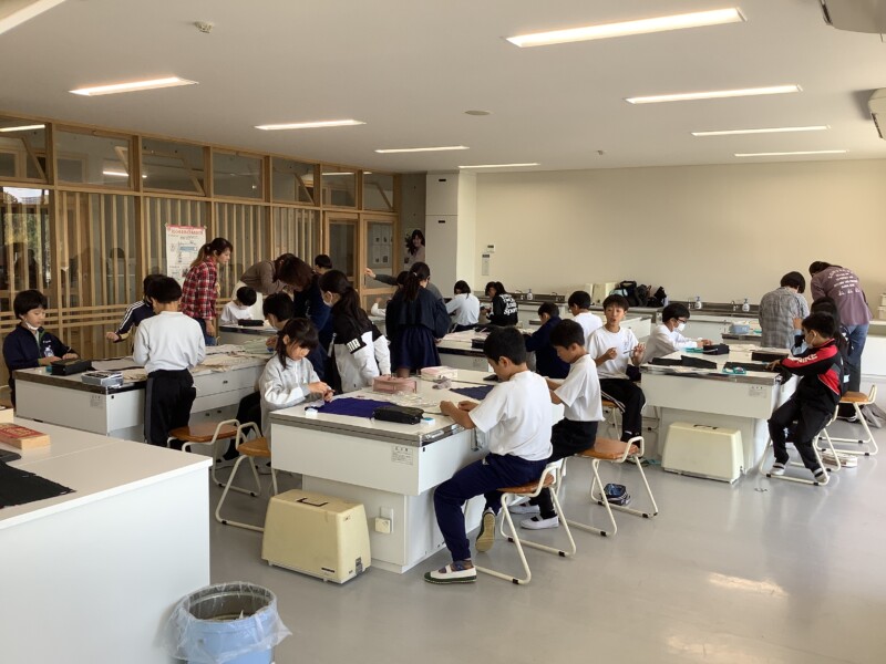 11月 14 2025 【5、6年生】ミシンの授業 11月10~14日に5、6年生でミシンの授業がありました。5年生はナフキン、6年生はエプロンを作っています。PTAの家庭教育委員の方々にご協力いただきました。児童にとっては、布のしつけやミシンの操作など全てが難しいようで、PTAの皆さんが引っ張りだこでした。ありがとうございました。