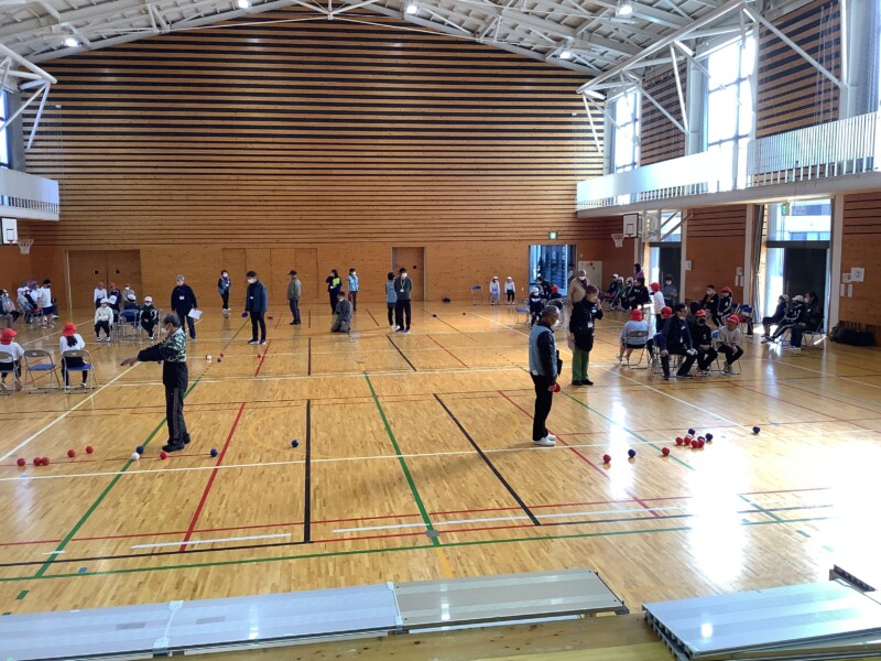 11月 27 2025 【5年生】ボッチャ交流会 11月27日に5年生の総合の授業で社会福祉協議会の方々にご協力いただき、ボッチャ交流会を行いました。講師の先生は20人以上いらっしゃり、体育館のアリーナがスポーツの試合会場みたいになりました。講師の方々と一緒に楽しみました。