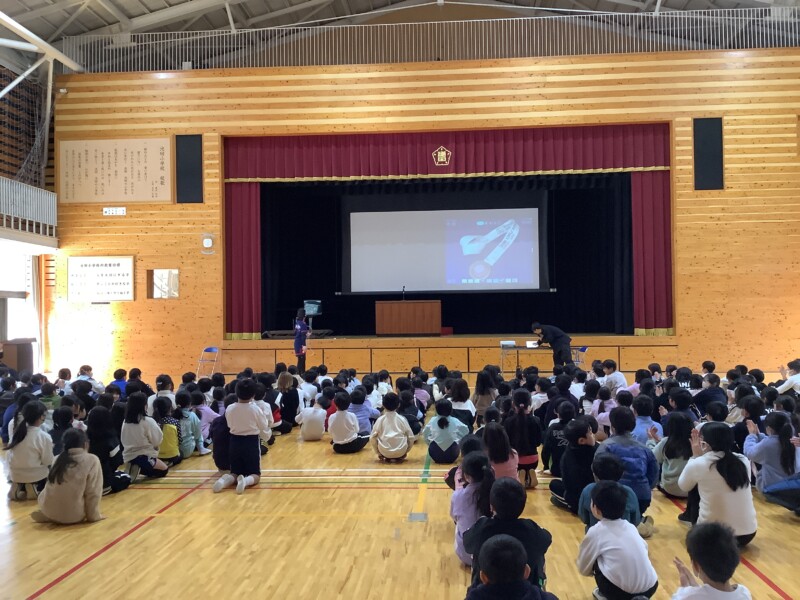 12月26日に冬休み前集会を行いました。学校長から各学年の良さの総括がありました。児童会執行部代表児童の話では、誰かが見ていない場所でも良いことを行うことを意識したこと、これからの生活では苦手な教科を好きと言えるくらい頑張りたい中学校に目を向けた話がありました。また、 ダブルダッチで世界大会でメダルを獲得した6年生児童の紹介がありました。おめでとうございます。どんな難しいことも諦めずに挑戦し続けることの大切さがみんなにも伝わりました。