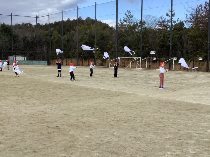 1月 19 2026 【1年生】凧揚げ 1月14日に生活科の授業で作った凧を凧揚げしました。最初は恐る恐る、糸をそこまで伸ばさずに揚げて、揚がった喜びに浸りながら、走っていました。だんだんと糸の長さも伸びてきて、最後には屋根の高さほどあるのではないかと思うほど高く揚げていました。雪が若干残っており、すがすがしい光景でした。
